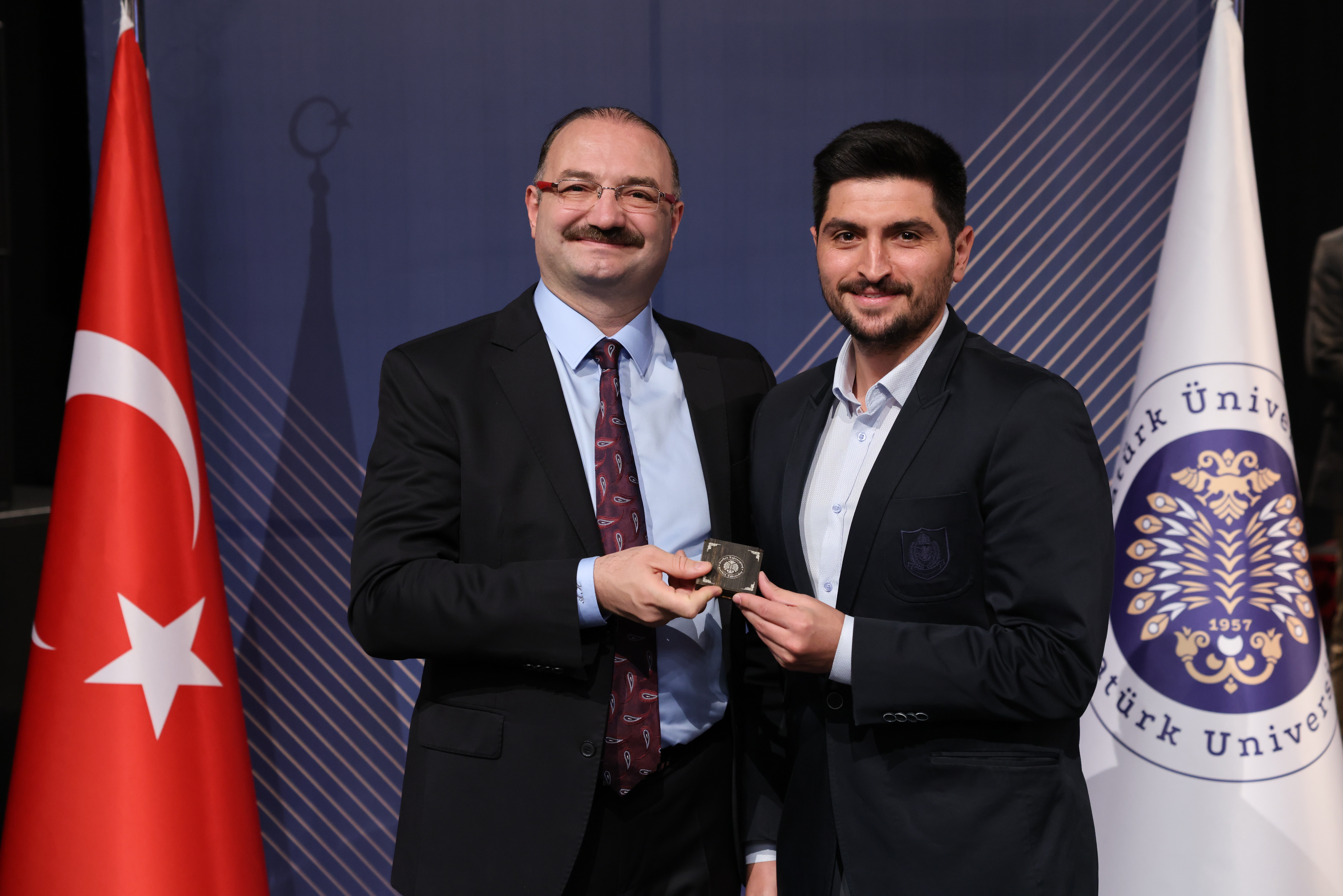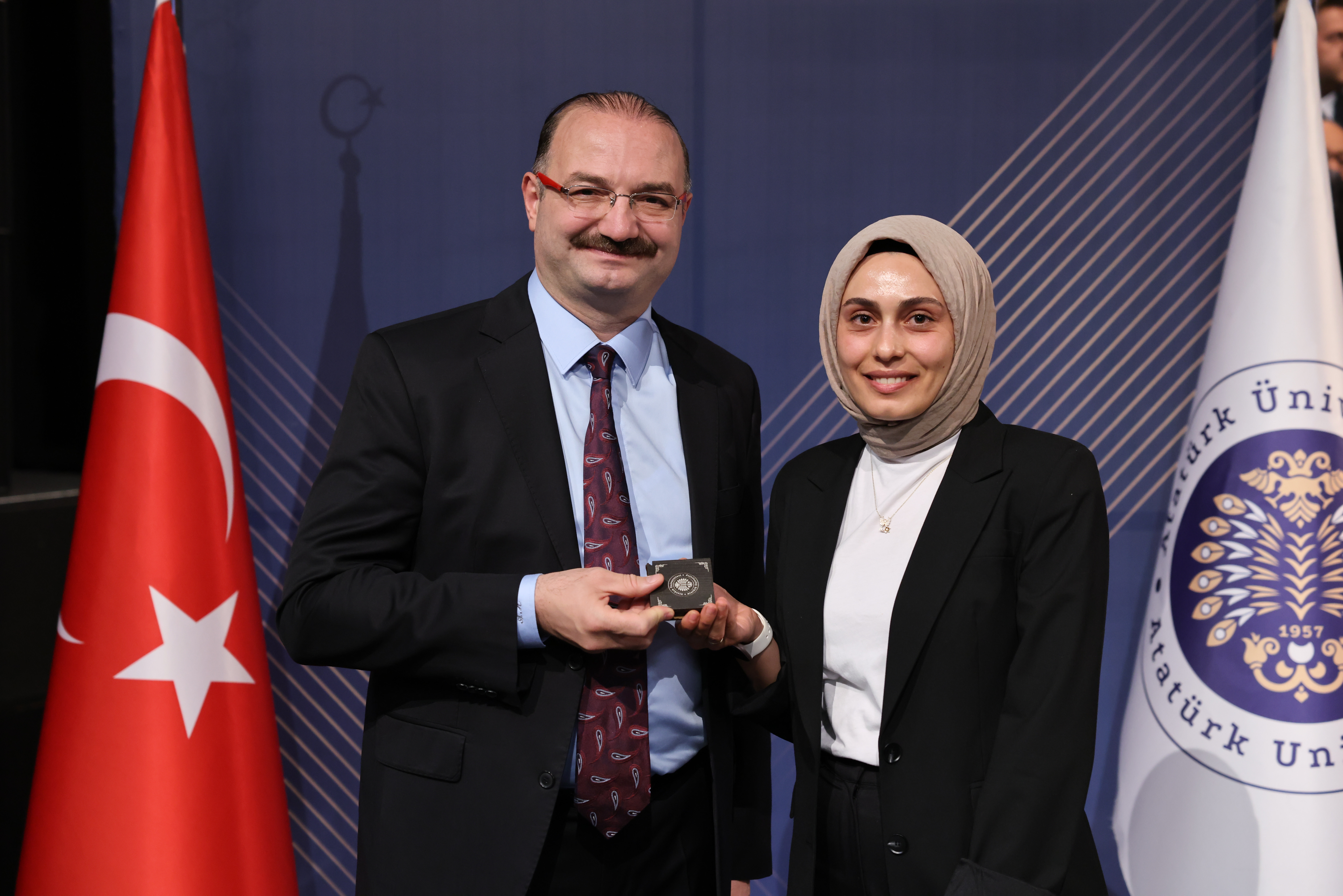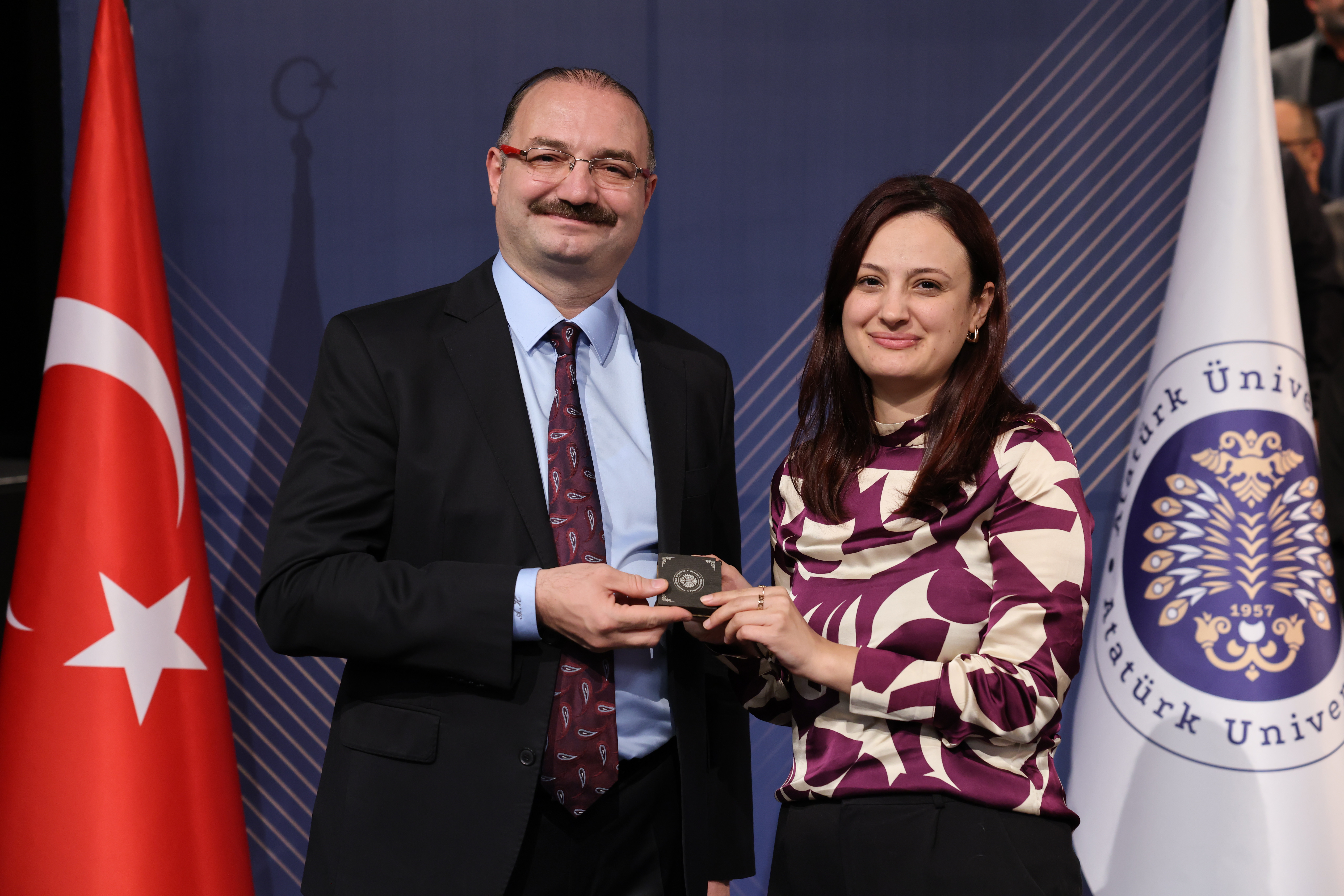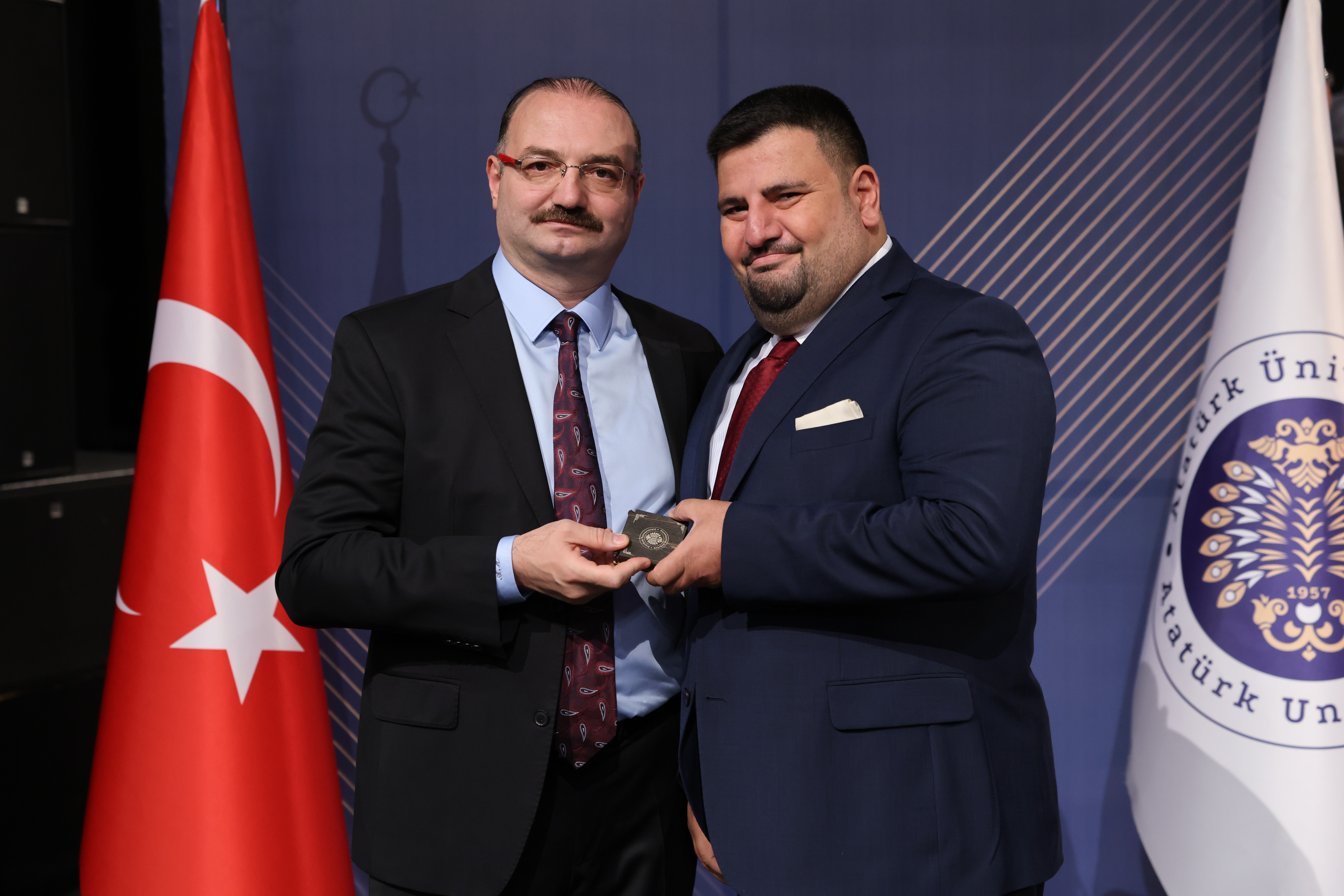 2025 yılı içerisinde yaptıkları araştırma faaliyetleri için Temmuz ve Ağustos aylarında başvuruda bulunan öğretim üyeleri, 15 Temmuz Milli İrade Salonunda düzenlenen törende ödüllerini Atatürk Üniversitesi Rektörü Prof. Dr. Ahmet Hacımüftüoğlu’nun elinden aldı.