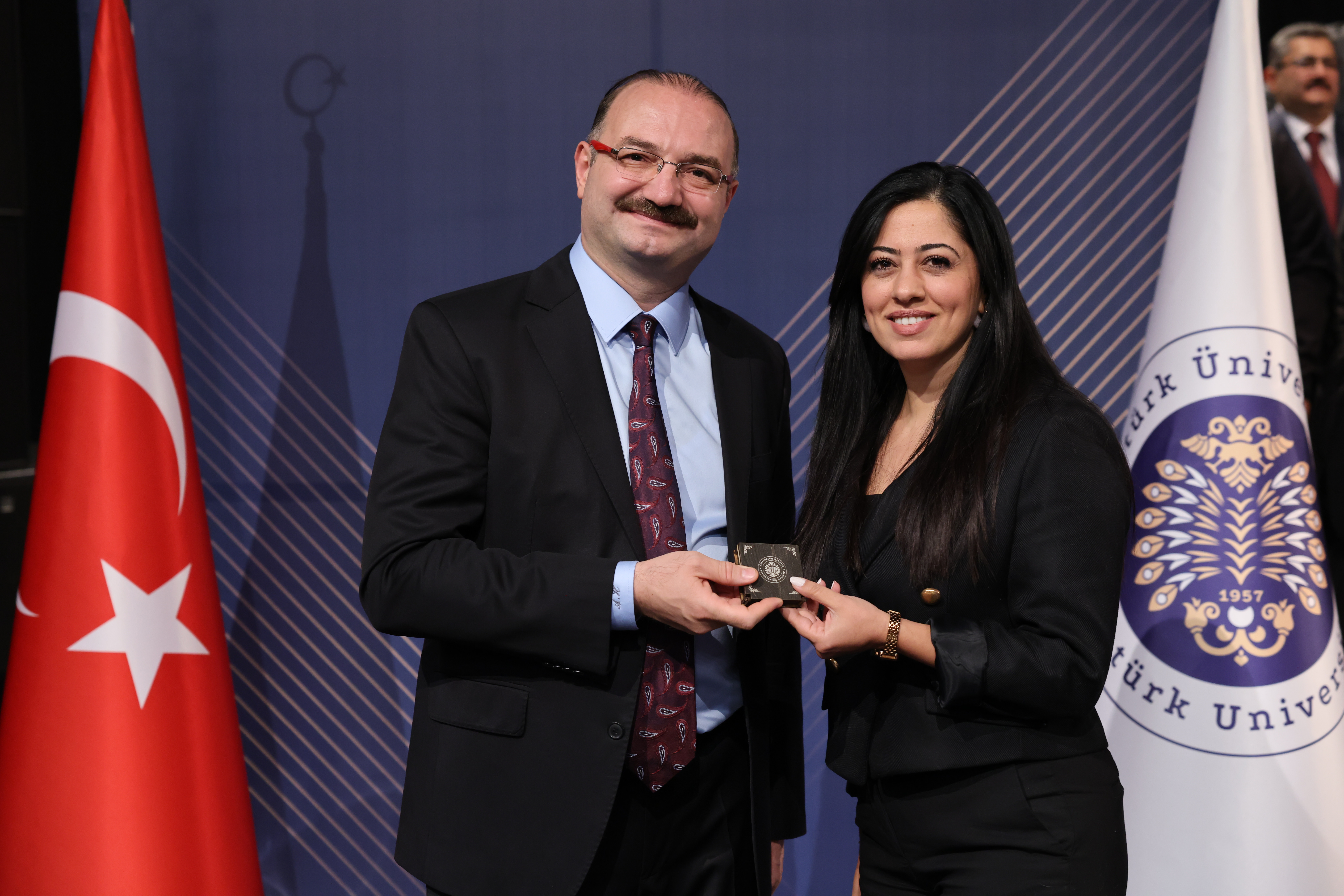 Atatürk Üniversitesinin kuruluşundan itibaren yürüttüğü bilimsel faaliyetlerle her zaman güçlü bir konuma sahip olduğunu belirten Rektör Hacımüftüoğlu şu değerlendirmelerde bulundu: “Sizler, gerçekleştirdiğiniz araştırmalar ve ortaya koyduğunuz bilimsel üretimlerle üniversitemizi hak ettiği yerlere taşıyor, hedeflerimizi gerçeğe dönüştürüyorsunuz. Bizler de ‘marifet iltifata tabidir’ anlayışıyla, elde edilen başarıları hiçbir zaman karşılıksız bırakmıyoruz. Bugün gerçekleştirdiğimiz törende, çalışmalarınızla öne çıkan öğretim üyelerimize ödüllerini takdim etmekten büyük mutluluk duyuyorum. Bilimsel yayınlardan projelere, patentlerden toplumsal faydaya kadar her alanda üretkenliğimizi artırarak yolumuza devam ediyoruz. Üniversitemizi ulusal ve uluslararası alanda söz sahibi kıldığınız için hepinize teşekkür ediyor, başarılarınızın artarak sürmesini diliyorum.”