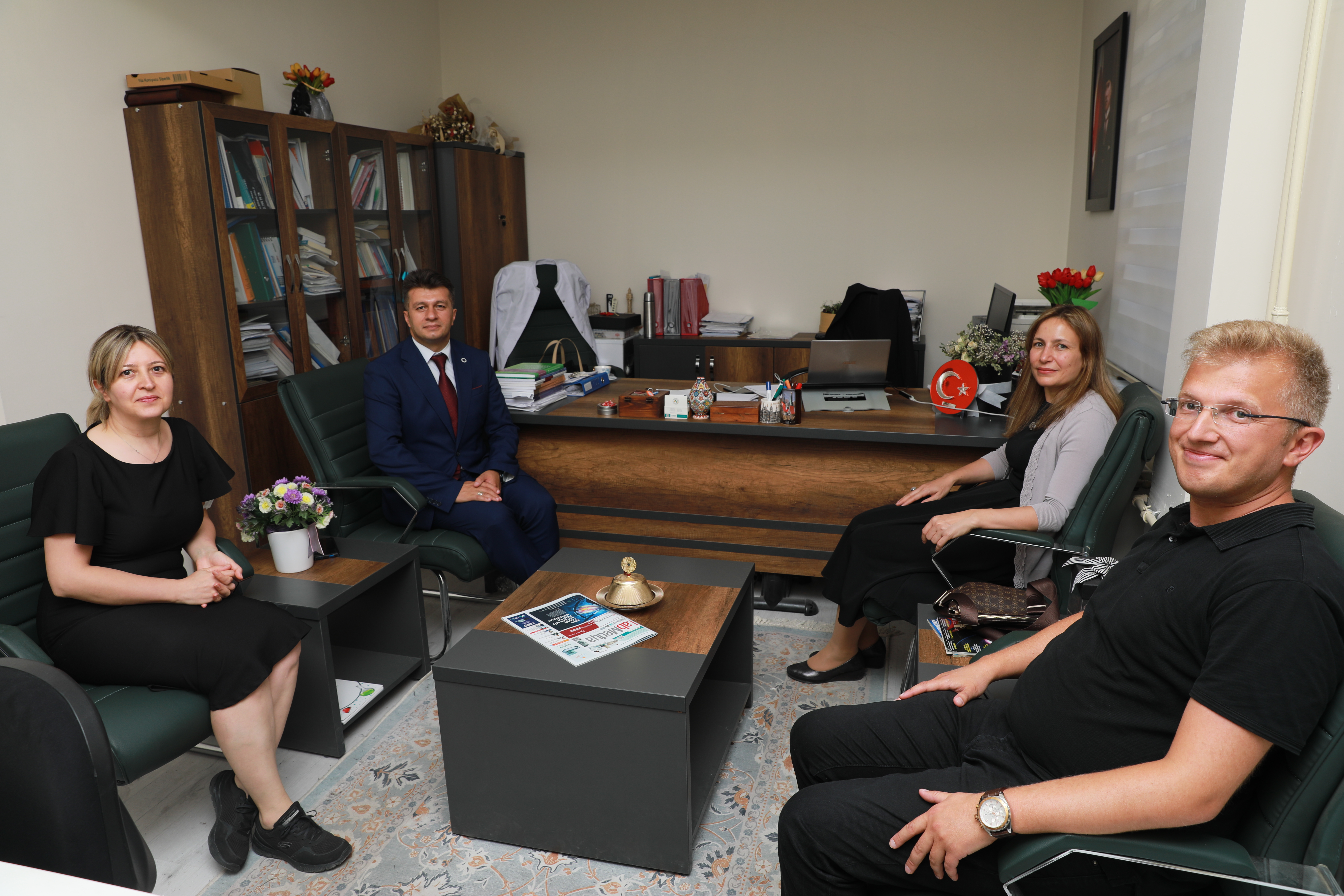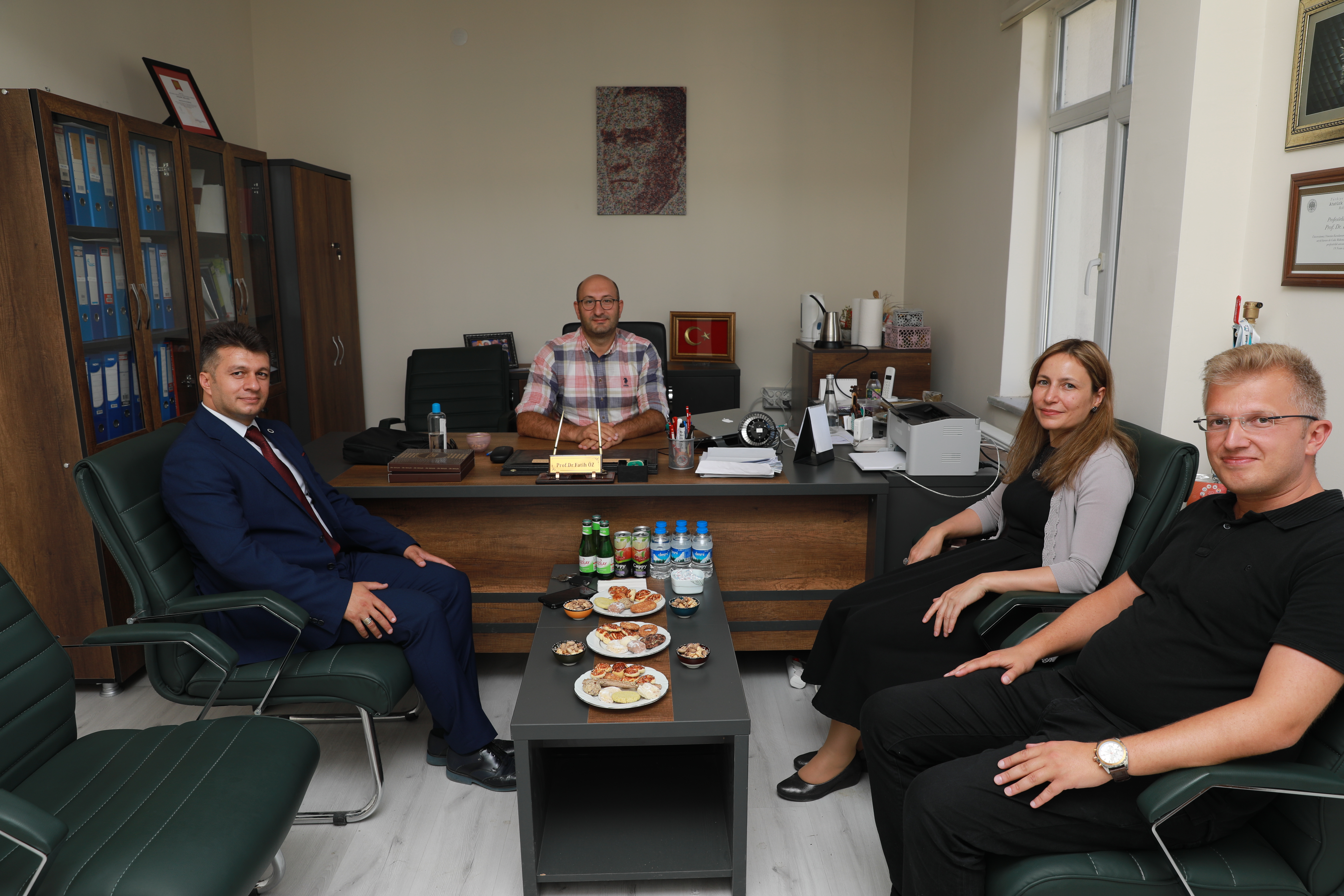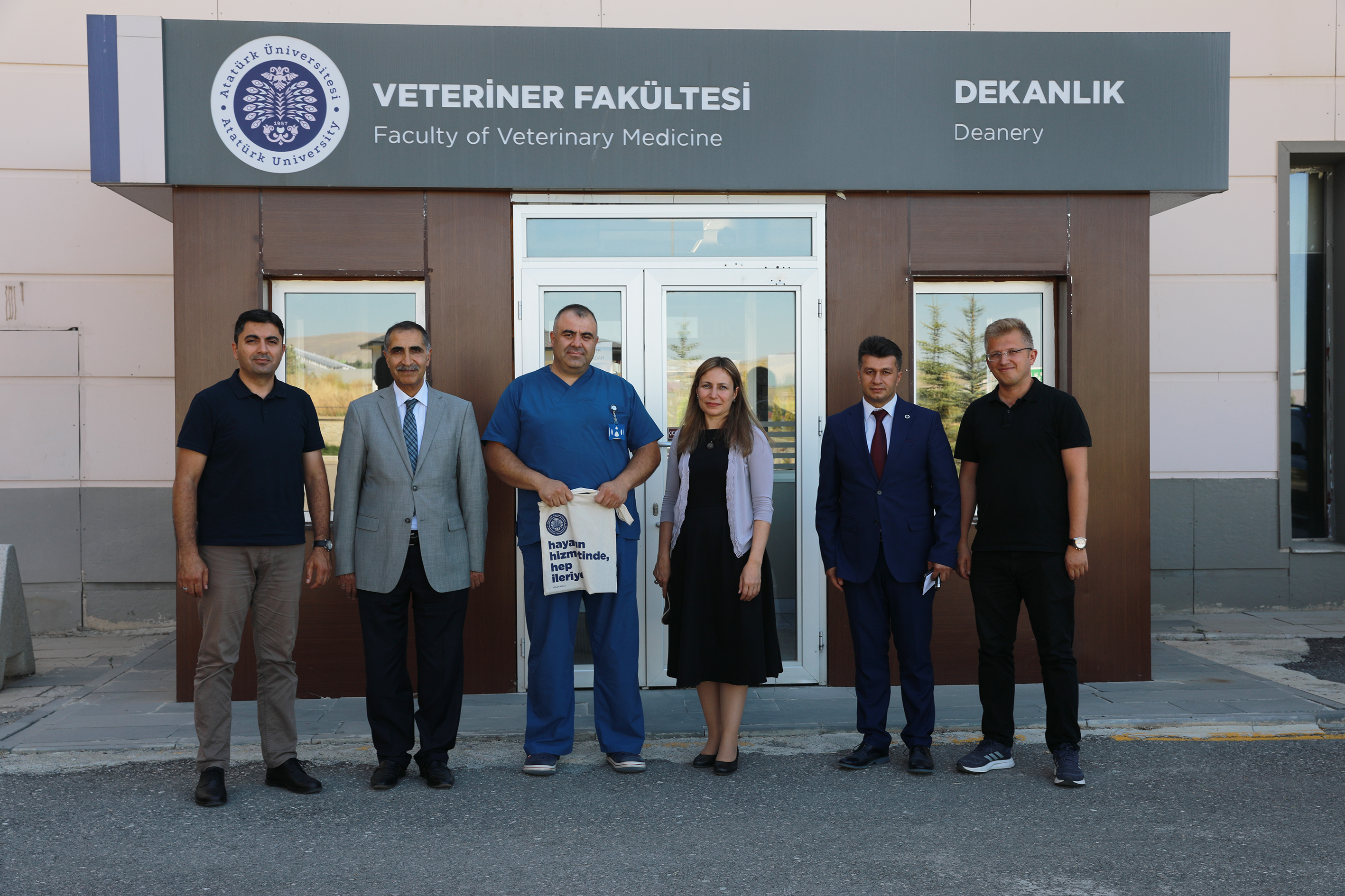 Atatürk Üniversitesi Rektörü Prof. Dr. Ömer Çomaklı’nın tebriklerini iletmek üzere gerçekleştirilen ziyarette, Rektör Vekili Prof. Dr. Ayşe Bayrakçeken Yurtcan, Proje Geliştirme ve Koordinasyon Ofisi Koordinatörü Doç. Dr. Serkan Yıldırım ile Koordinatör Yardımcıları Doç. Dr. Bilal Nişancı ile Doç. Dr. Selda Örs Cırık yer alırken, Veteriner Fakültesi Dekanı Prof. Dr. Yavuz Selim Sağlam, Ziraat Fakültesi Dekanı Prof. Dr. Önder Çalmaşur ve Kazım Karabekir Eğitim Fakültesi Dekanı Prof. Dr. Ufuk Şimşek ziyarete refakat etti.