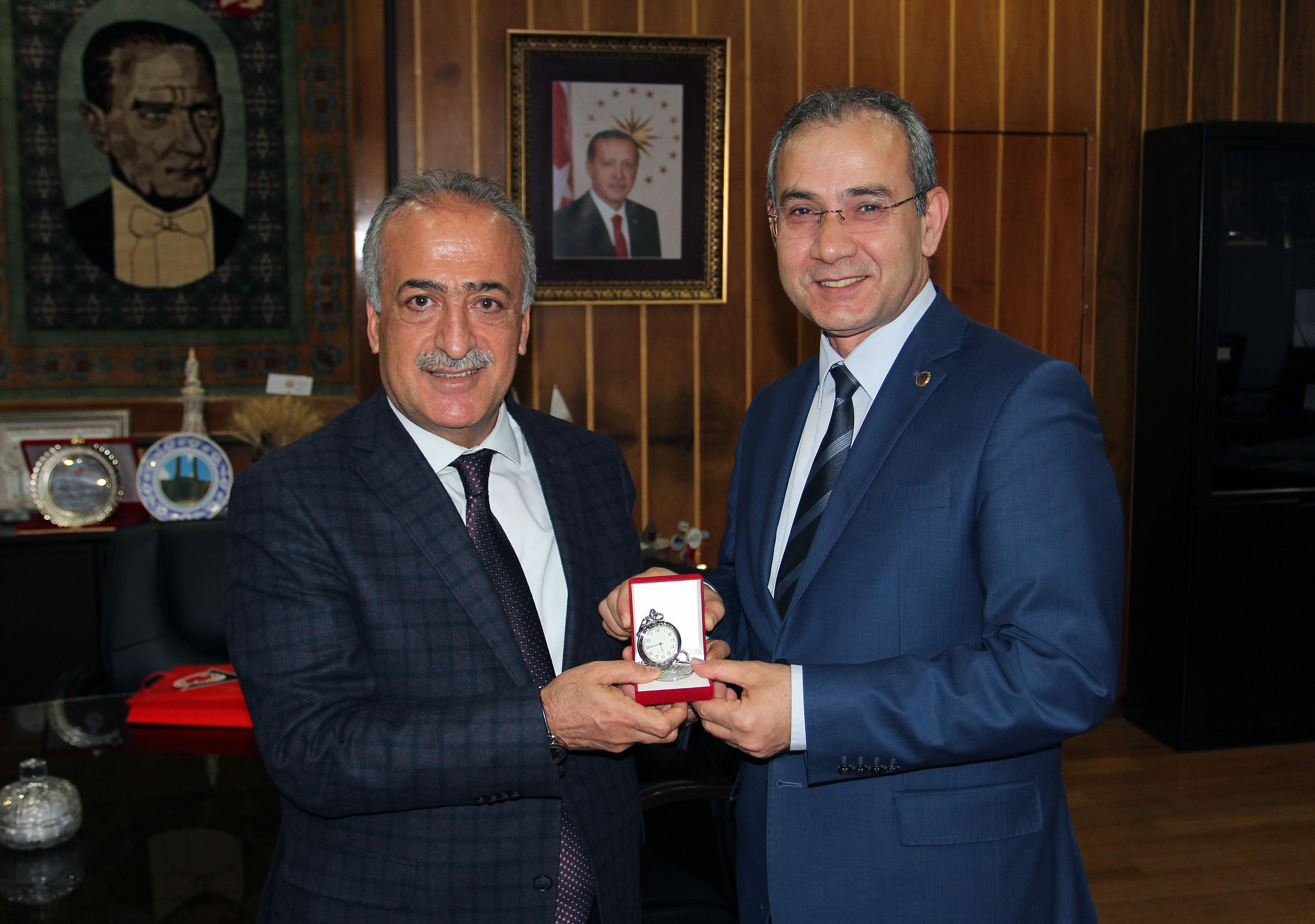 Konferansın ardından Rektör Çomaklı’yı makamında ziyaret eden TÜBİTAK Başkan Yardımcısı Arcaklıoğlu ve Rektör Pınarbaşı, Çomaklı’ya misafirperverliğinden dolayı teşekkür ettiler.