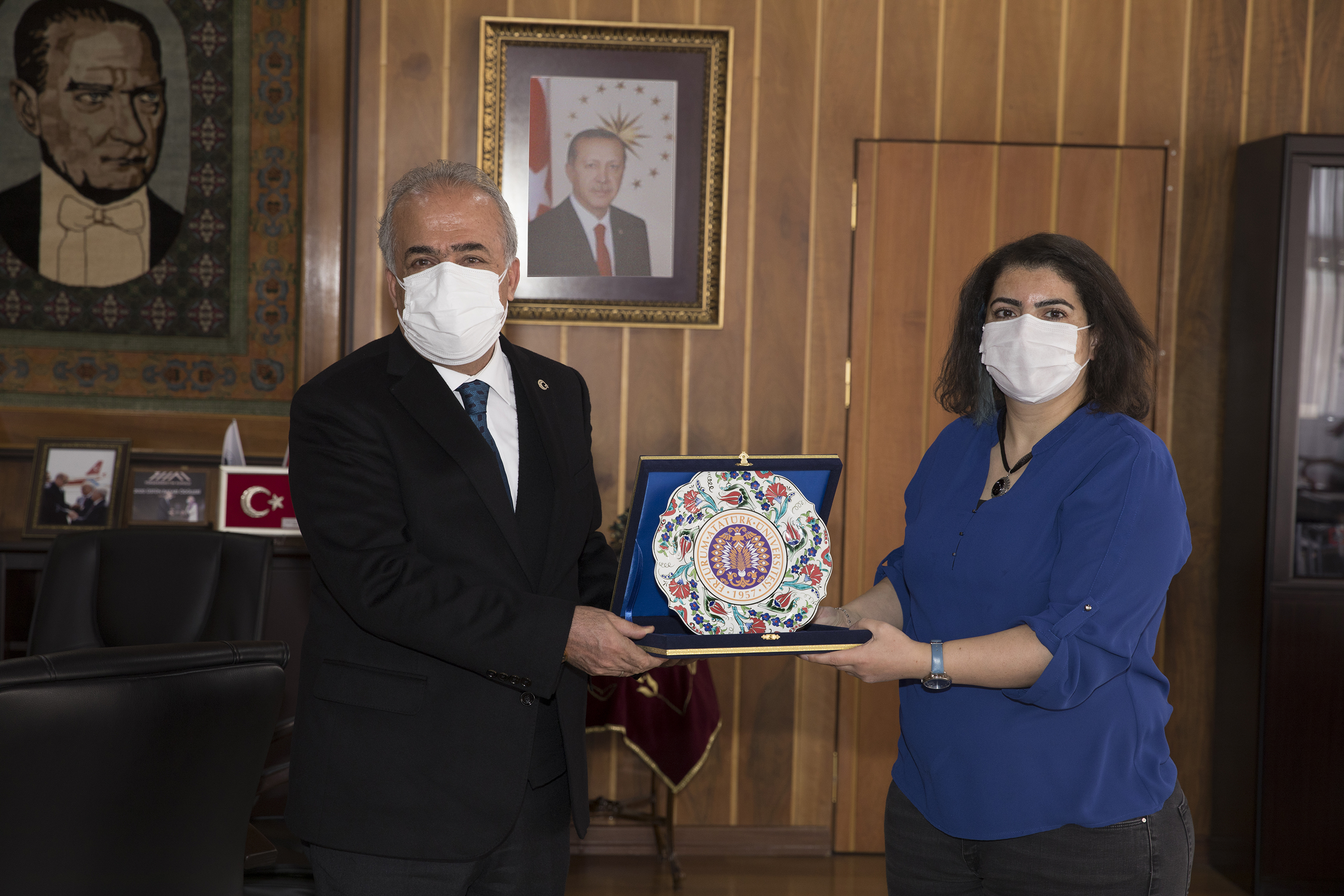 Türkiye Bilimsel ve Teknolojik Araştırma Kurumu (TÜBİTAK) tarafından her yıl verilen “Bilim, Özel, Hizmet ve Teşvik Ödülleri” töreninde Sağlık Bilimleri kategorisinde 2020 yılı TÜBİTAK Teşvik Ödülünü almaya hak kazanan Atatürk Üniversitesi Tıp Fakültesi Tıbbi Farmakoloji Anabilim Dalı Öğretim Üyesi Prof. Dr. Elif Çadırcı, Rektör Prof. Dr. Ömer Çomaklı’yı ziyaret etti.