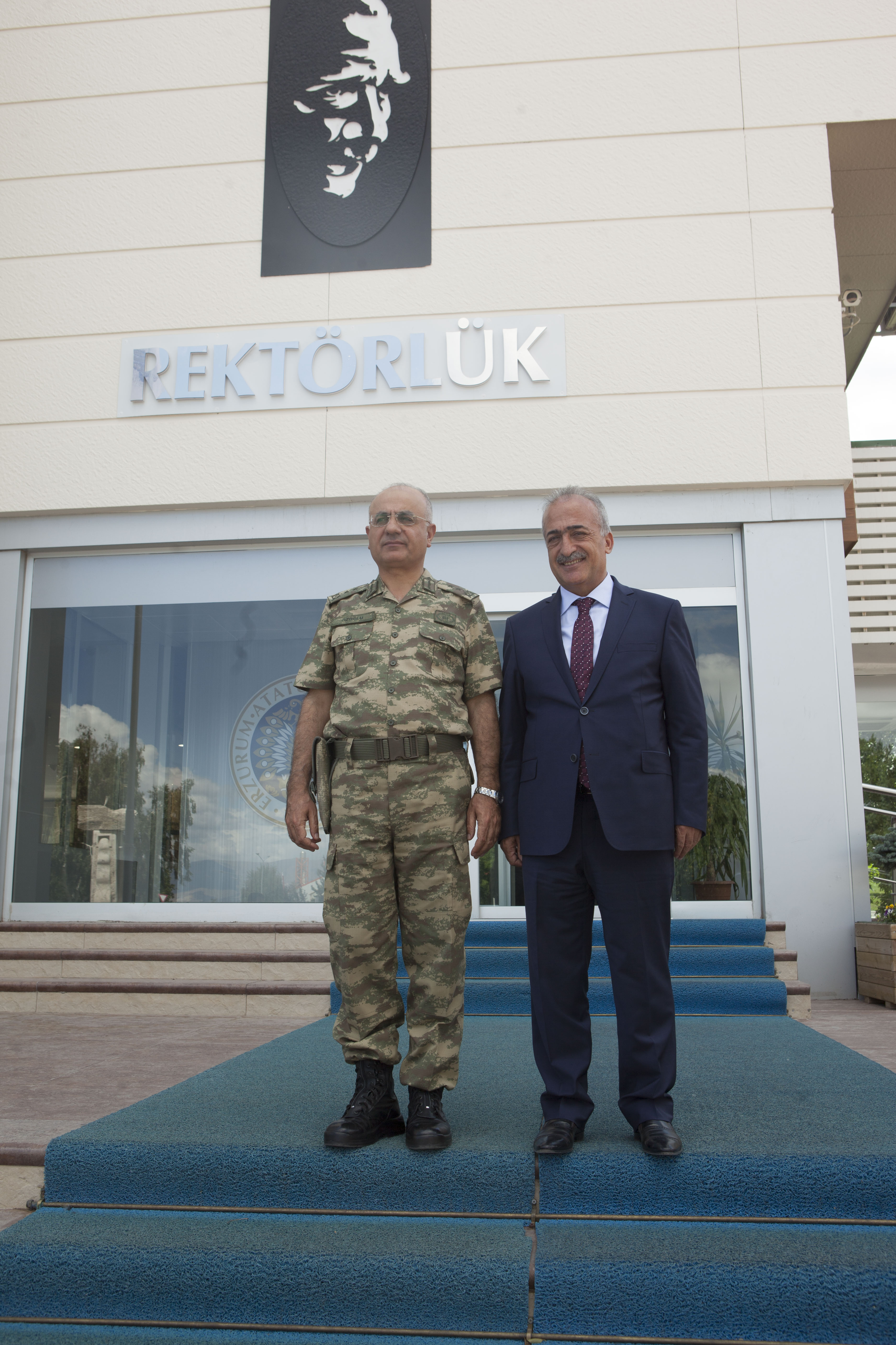 Tümgeneral Özoğlu da Rektör Prof. Dr. Ömer Çomaklı'ya yeni görevinde başarılar dileyerek, Atatürk Üniversitesi’nin bulunduğu konumdan daha üst seviyelerde olması gerektiğini vurguladı.