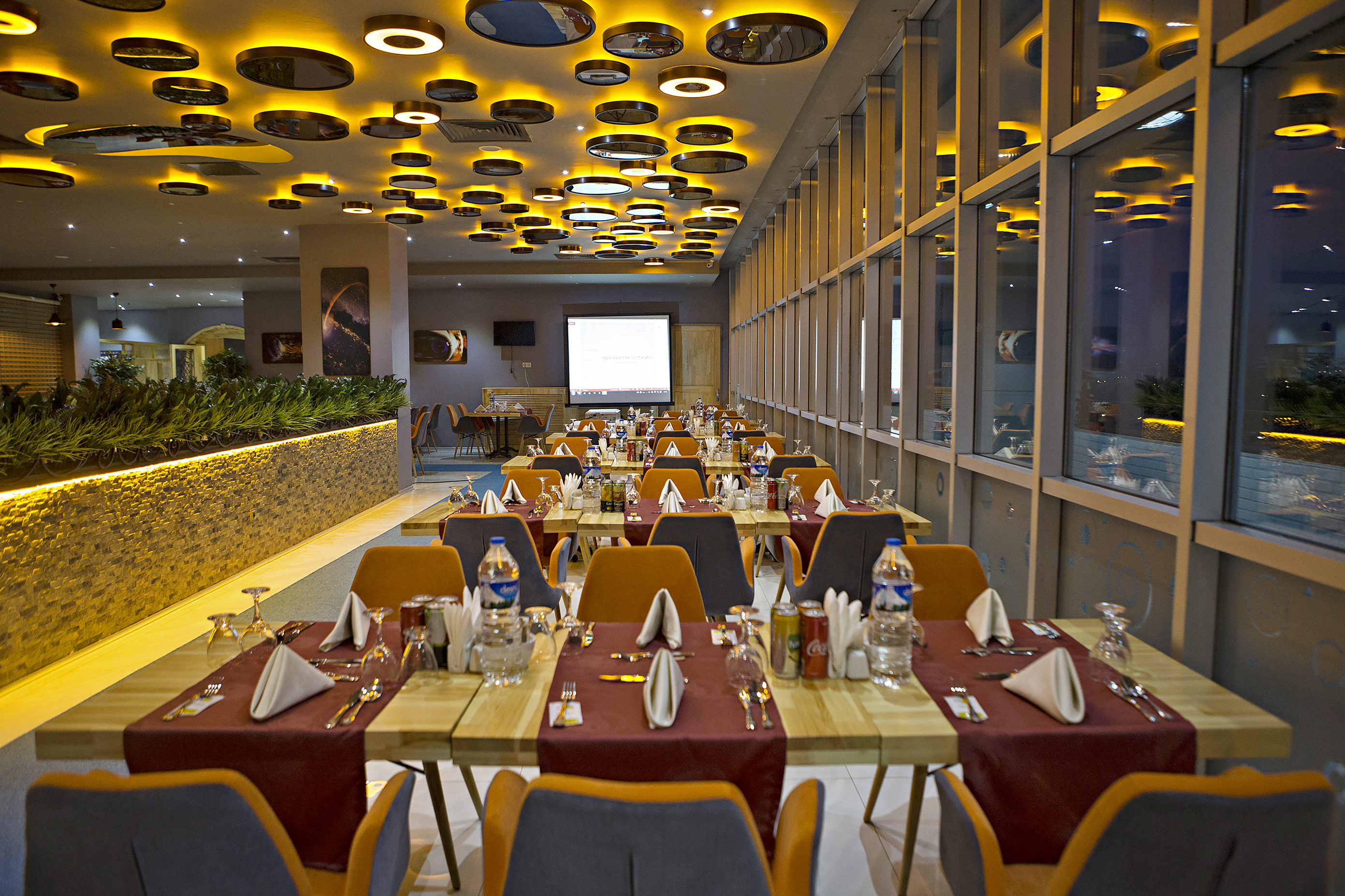 Dünya mutfağından yemek örneklerinin sunulduğu ve 140 kişi kapasiteye sahip Uzay Restoran, tüm vatandaşlarımıza hizmet verecek. İç mimarisi ile dikkat çeken restoranda, evrenin rengi olarak bilinen "bej" ağırlıkta kullanıldı. Gezegenleri simgeleyen tavan görseli ile uzay fotoğraflarının bulunduğu restoran, profesyonel ekibiyle misafirlerine eşsiz lezzetler tatma fırsatı tanıyor.
