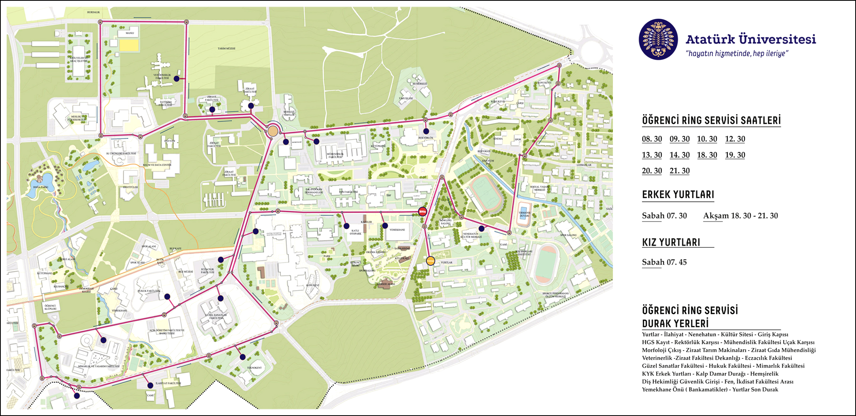 *Kampüs içi ring servisinin saatleri ve durak yerleri: