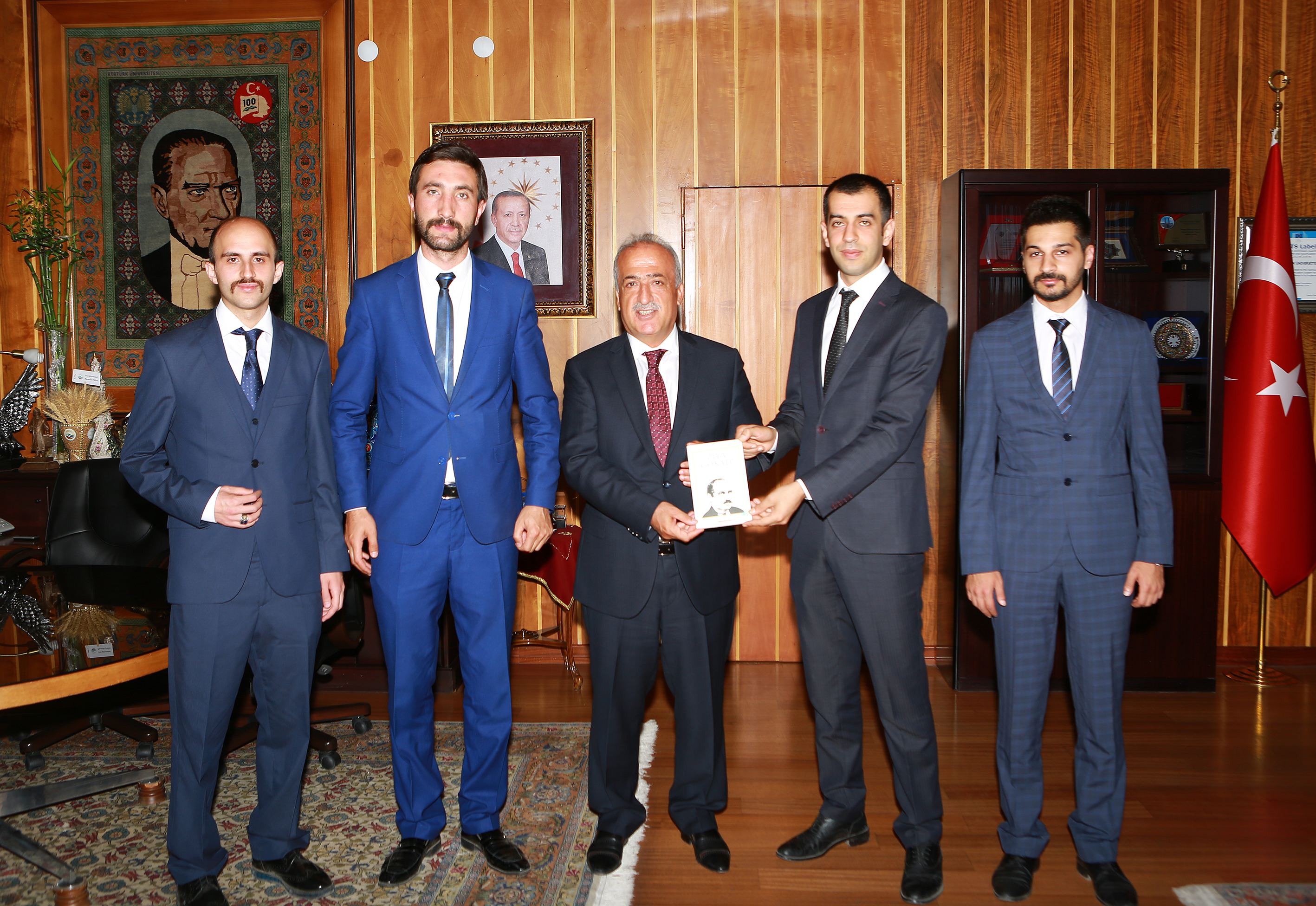 Ziyaretin ardından Erzurum Ülkü Ocakları İl Başkanı M. Haktan Genç, Rektör Çomaklı’ya kitap hediye etti.