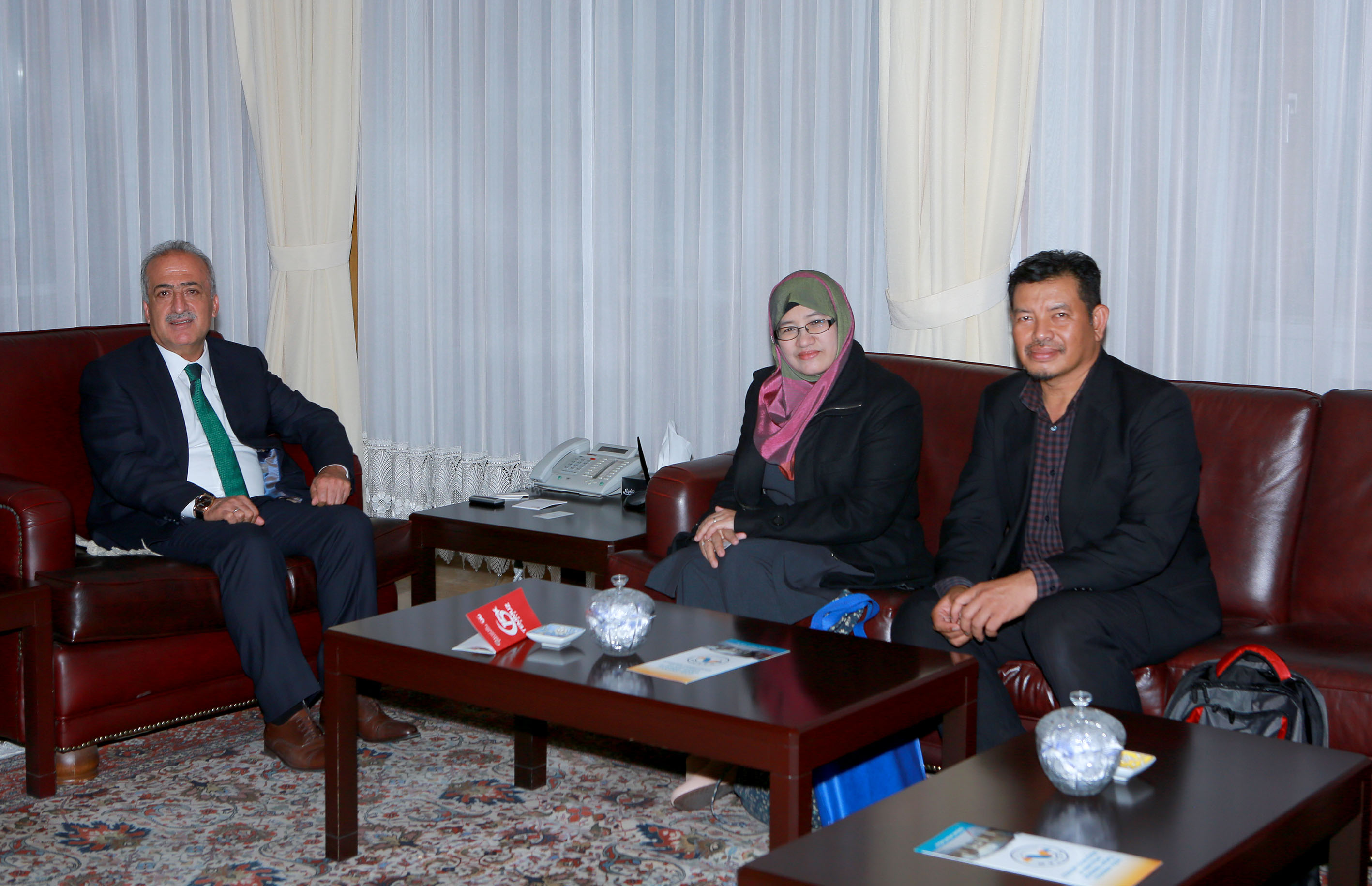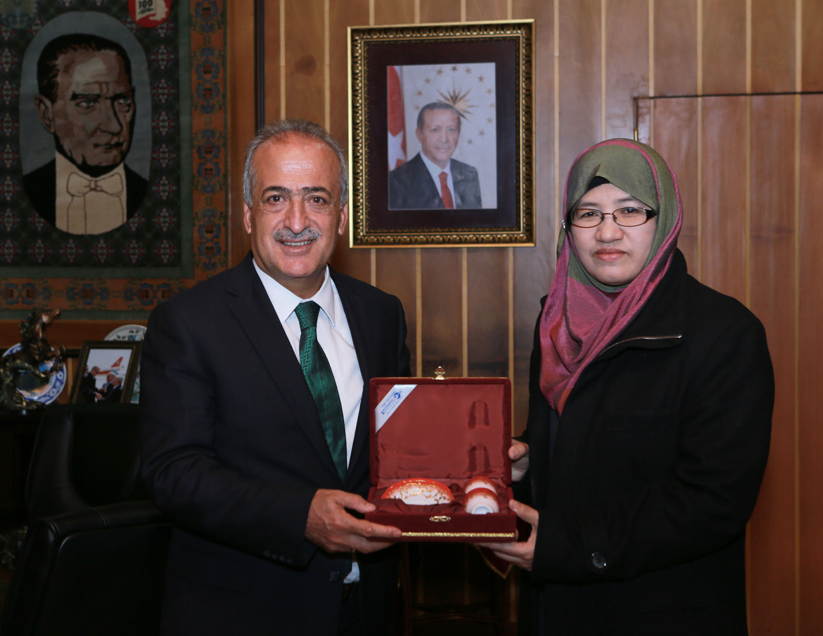 University of Putra Malaysia (UPM) Lisansüstü programlar dekanı Prof. Dr. Robiah binti Yunus, Atatürk Üniversitesi Rektörü Prof. Dr. Ömer Çomaklı'yı makamında ziyaret etti.