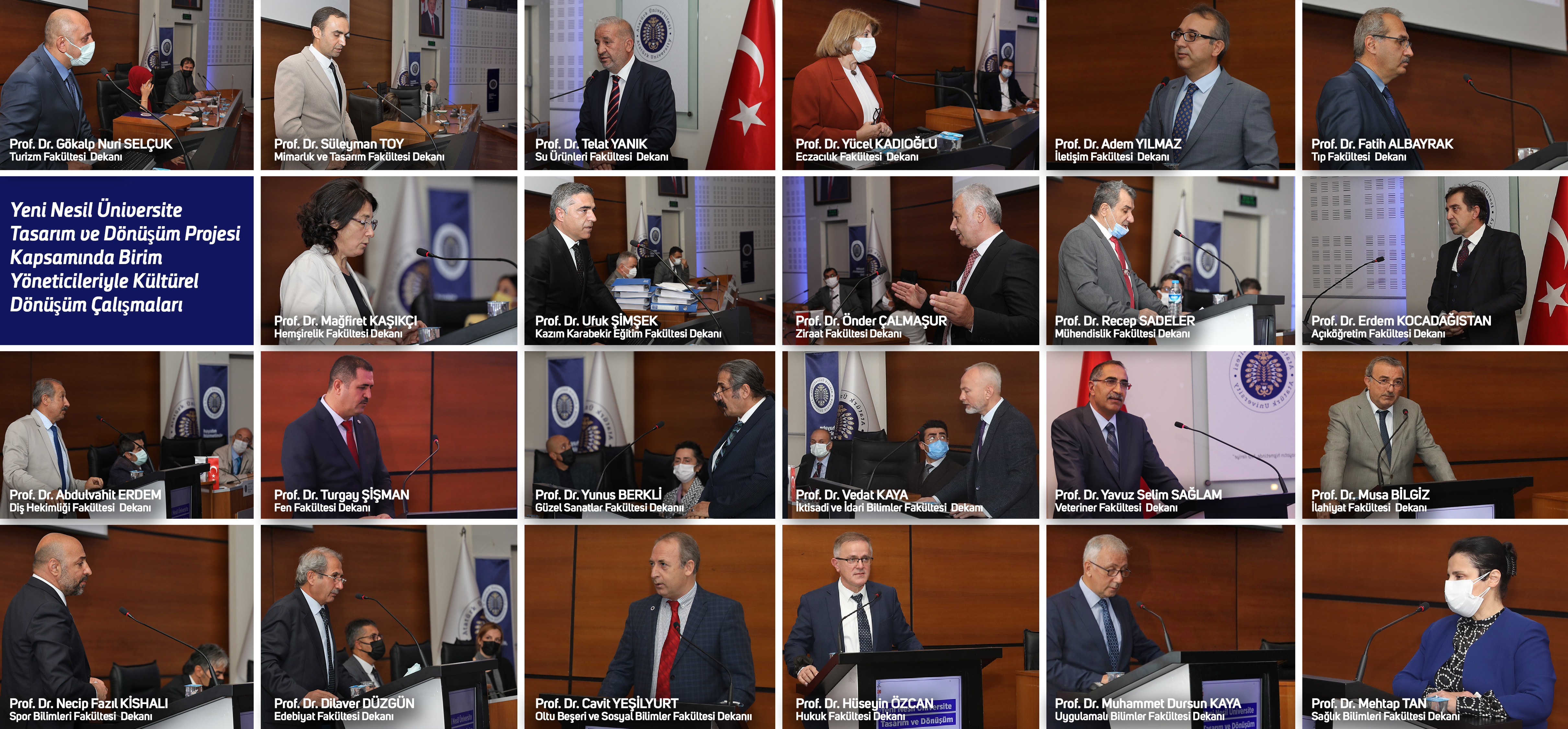 Yeni Nesil Üniversite Tasarım ve Dönüşüm Projesi çerçevesinde birim yöneticileriyle kültürel dönüşüm çalışmalarının fakülteler ayağı Sağlık Bilimleri Fakültesi ile yapılan toplantıyla sona ererken, oturumlar yabancı diller, konservatuvar ve meslek yüksekokulları yönetici ve öğretim üyelerinin katılımıyla gerçekleşecek toplantılarla devam edecek.