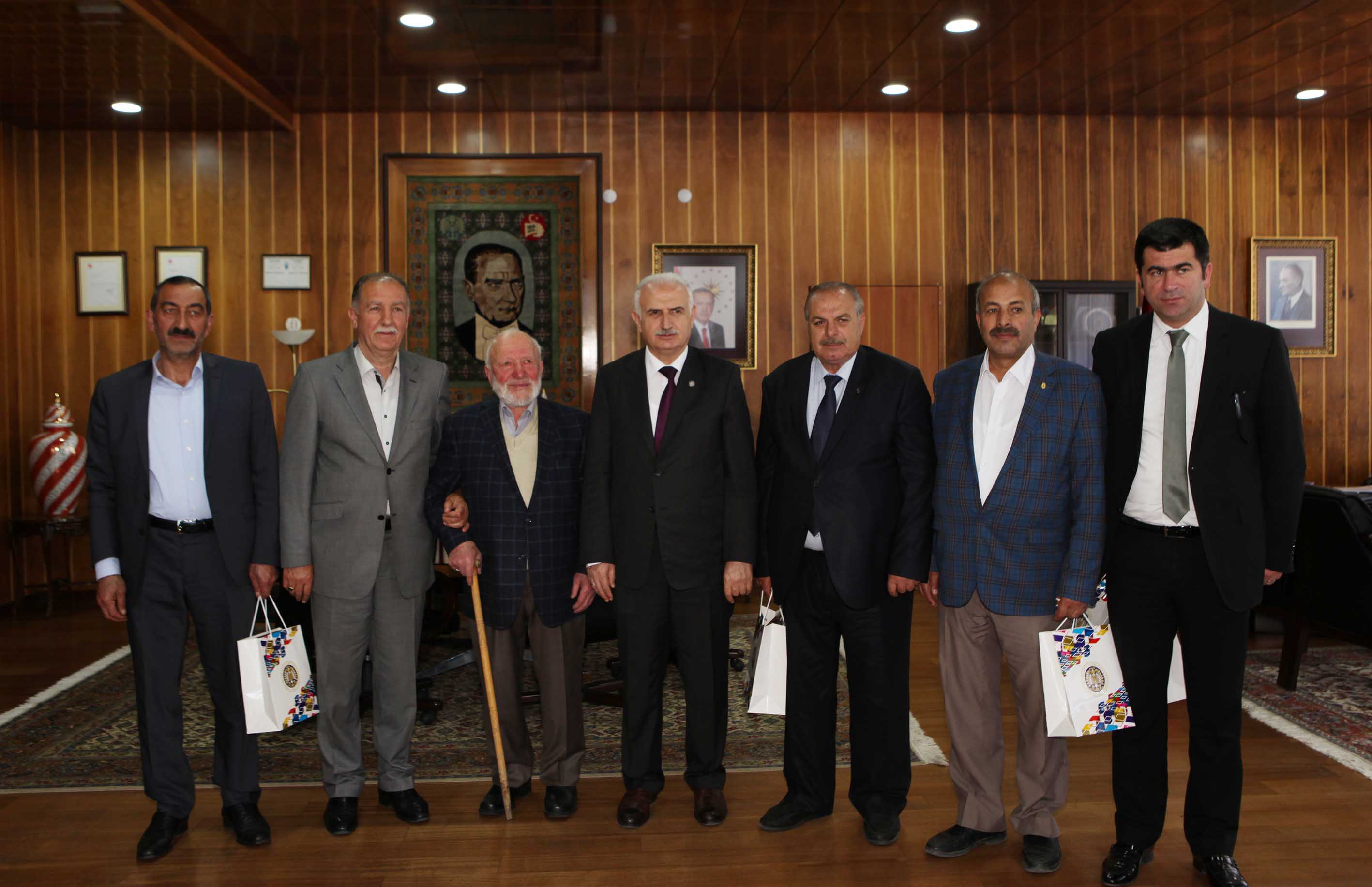 Erzurum Esnaf ve Sanatkârlar Odaları Birliği (ESOB) Başkanı Rasim Fırat, yönetim kurulu üyeleri ve yılın ahisi seçilen 82 yaşındaki İbrahim Tunç, Ahilik Haftası kutlamaları kapsamında Atatürk Üniversitesi Rektörü Prof. Dr. Hikmet Koçak’ı makamında ziyaret etti.