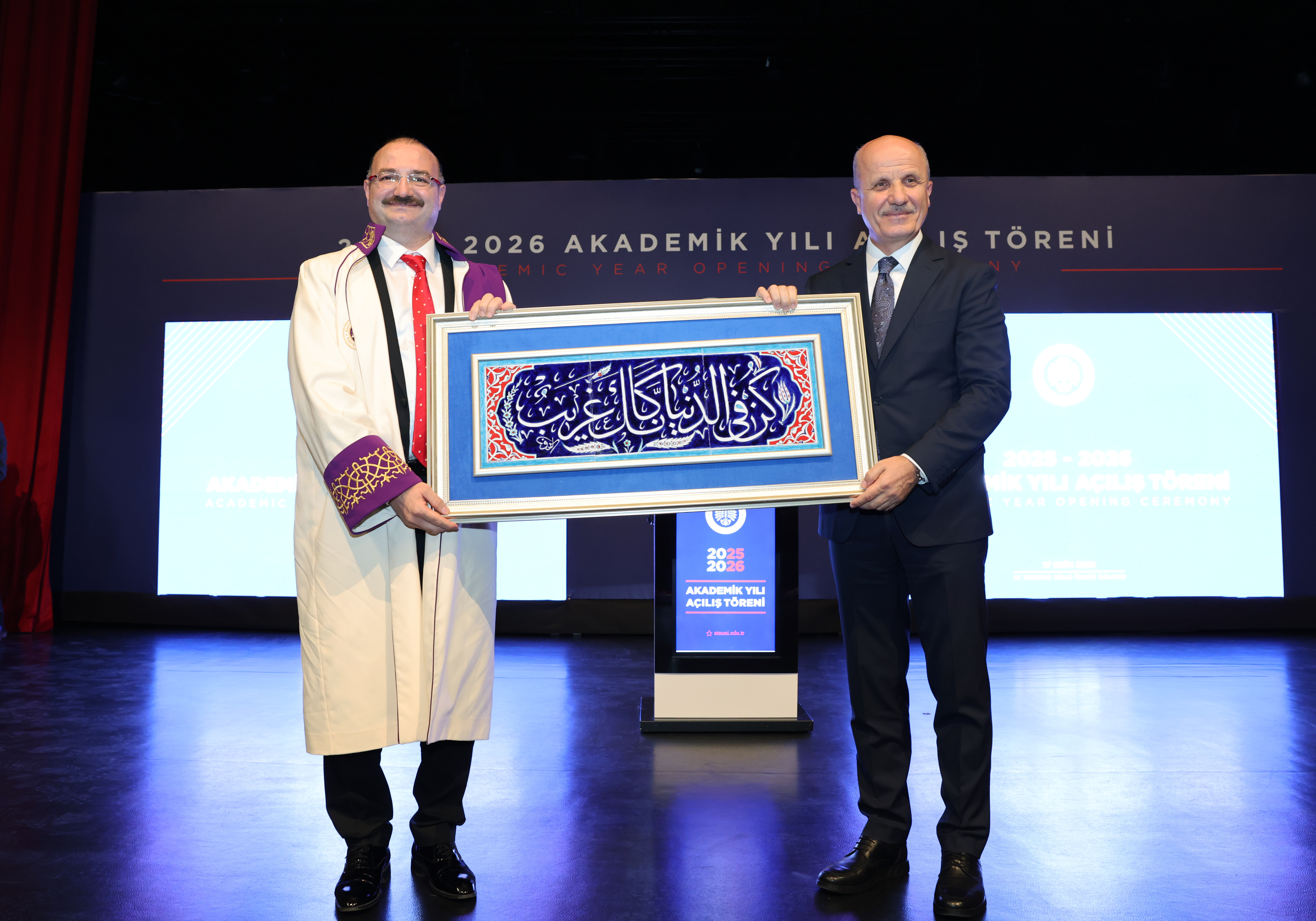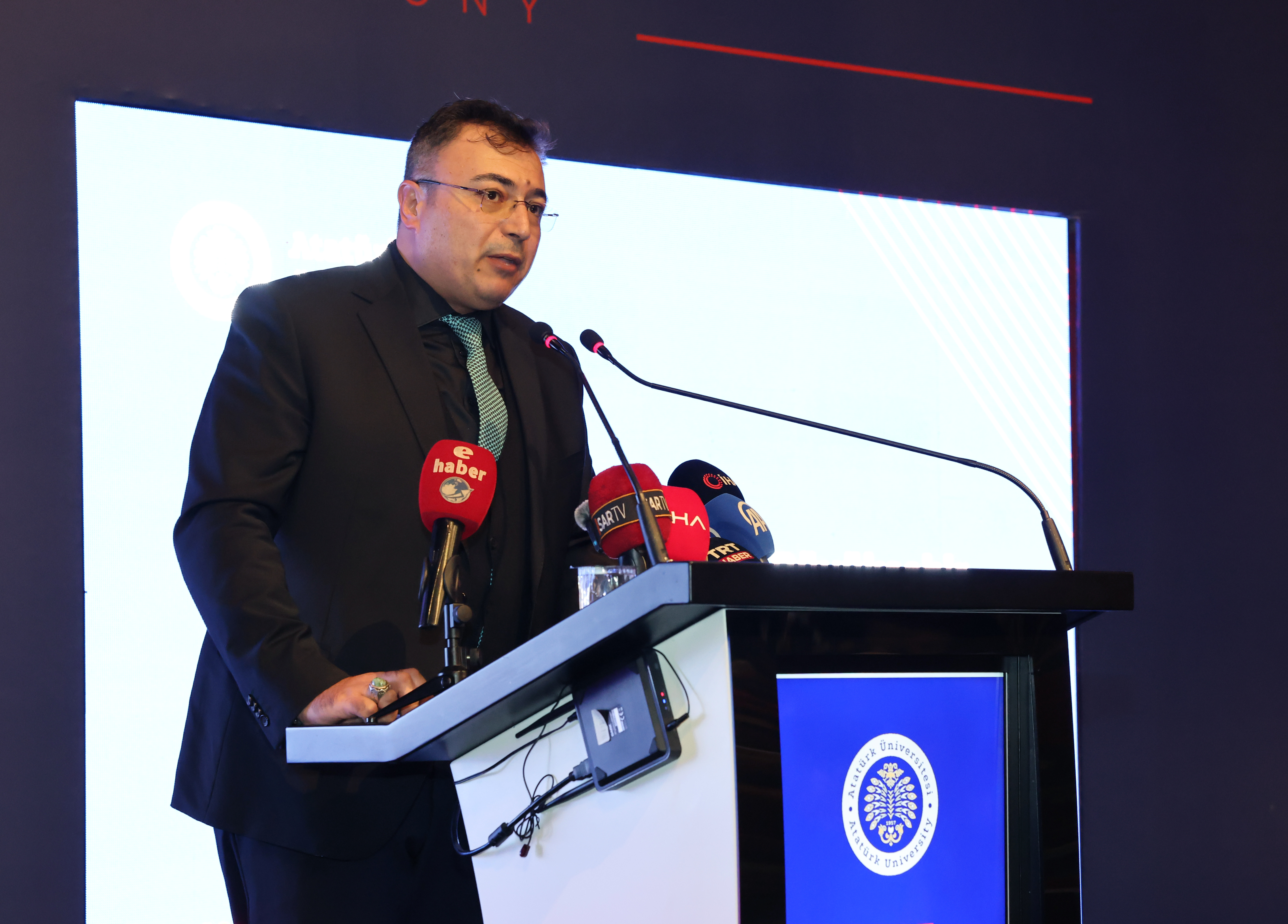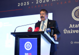 Konuşmasının devamında Erzurum’un köklü ilim ve irfan geleneğine değinen Rektör Hacımüftüoğlu, Atatürk Üniversitesinin bu mirastan beslenerek 68 yıldır bilim yolculuğunu sürdürdüğünü belirtti. Üniversitenin 23 fakülte, 12 meslek yüksekokulu, 1 konservatuvar, 9 enstitü ve 44 araştırma merkeziyle güçlü bir akademik yapıya sahip olduğunu aktaran Hacımüftüoğlu, toplam 63 bin örgün öğrencinin yanı sıra açık ve uzaktan öğretim programlarında yer alan 578 bin öğrenciyle birlikte 640 bine ulaşan öğrenci sayısıyla Atatürk Üniversitesinin adeta bir kültürler buluşma noktası olduğunu kaydetti.