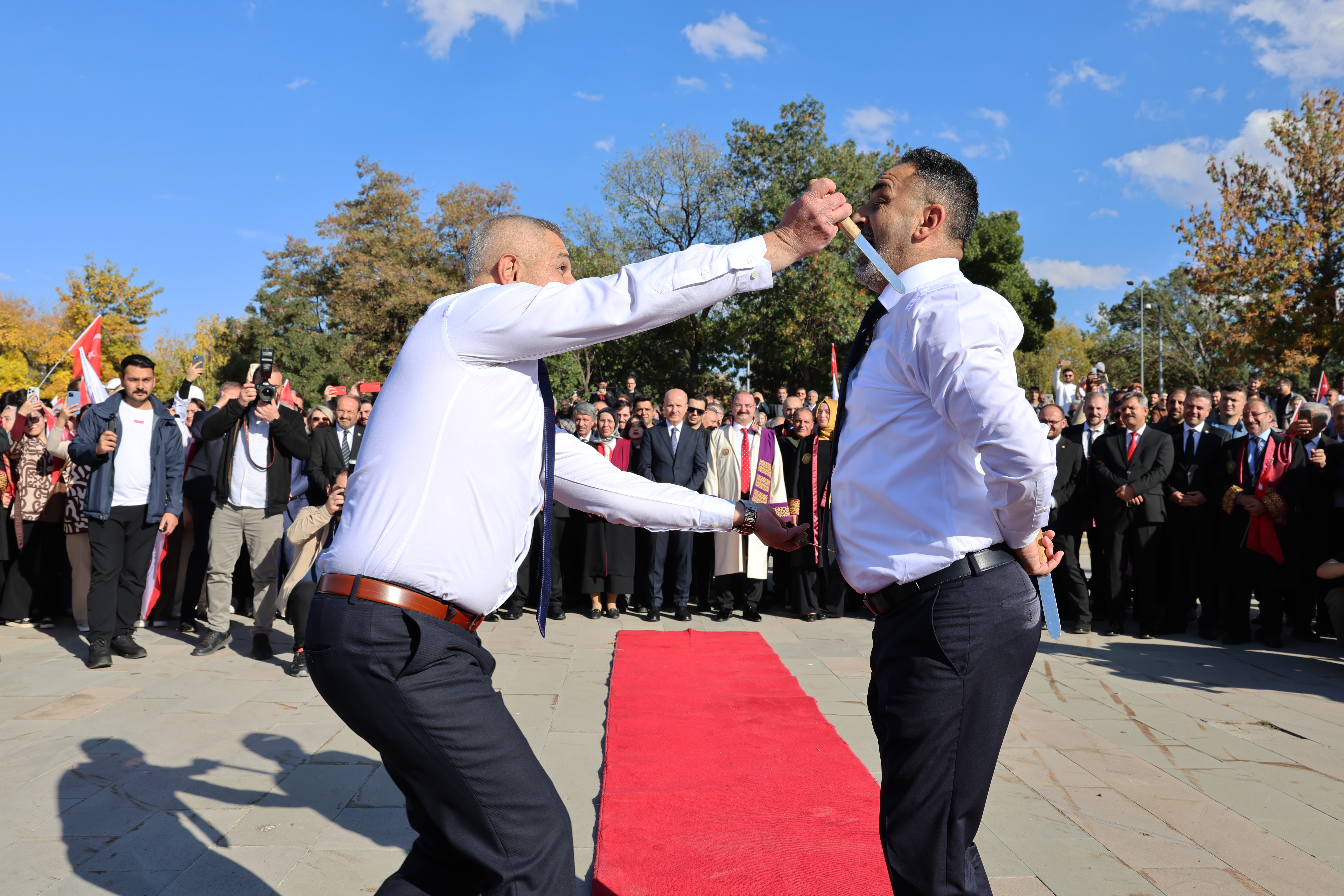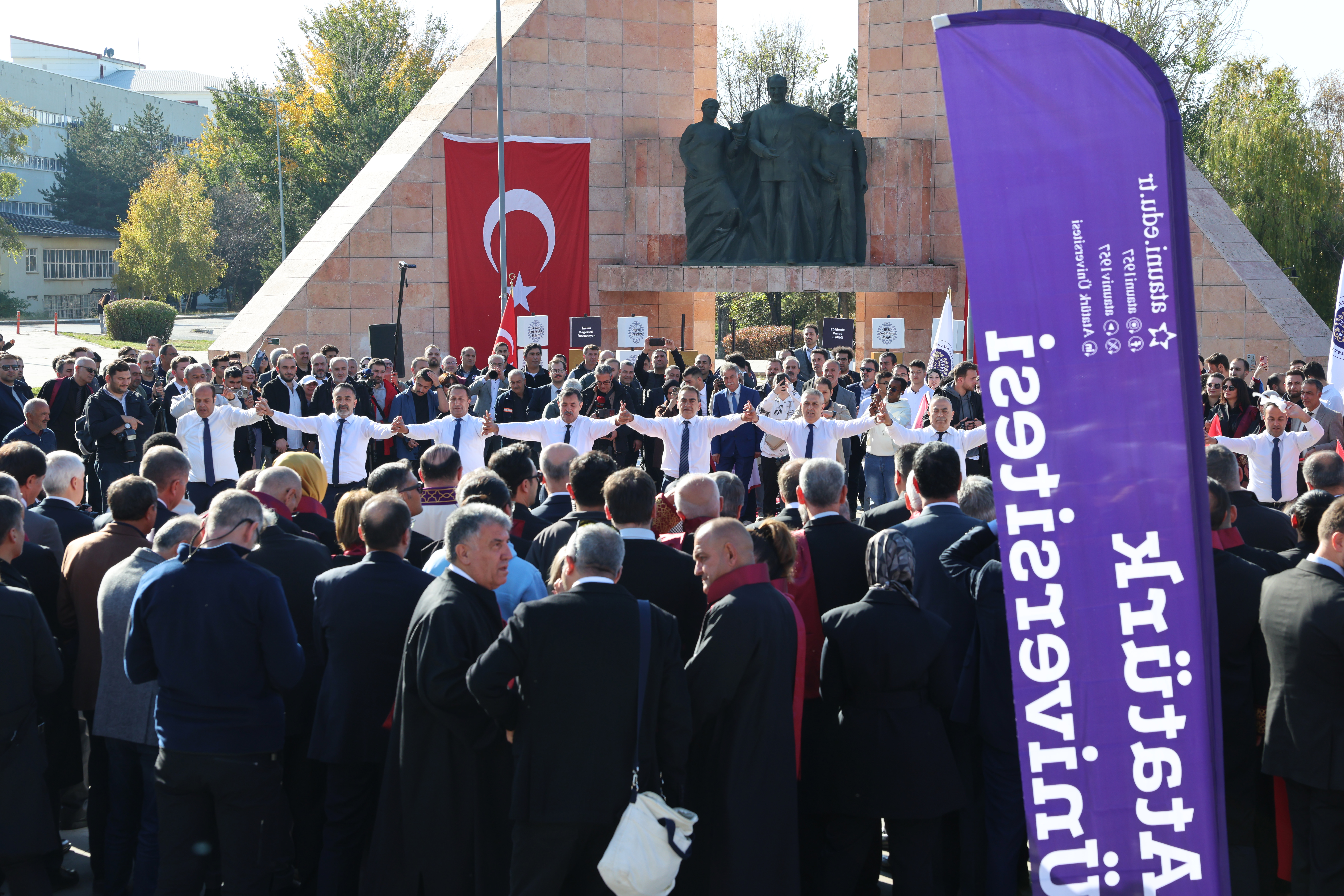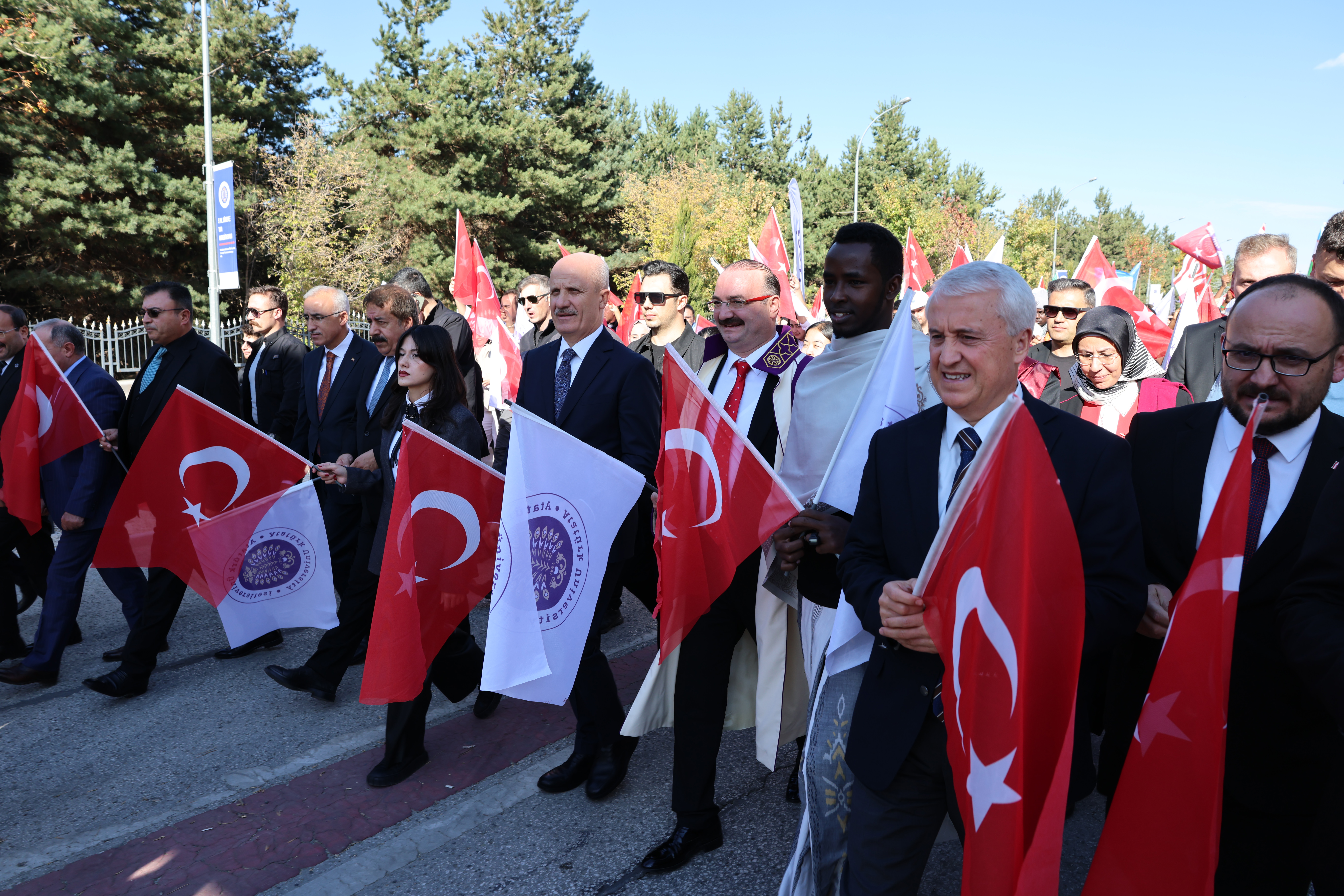 Senato toplantısının ardından akademik yılın açılışını gerçekleştirmek üzere kortej yürüyüşüne katılan YÖK Başkanı Özvar, Atatürk Üniversitesi Rektörü Prof. Dr. Ahmet Hacımüftüoğlu ve üniversite mensuplarıyla birlikte bilim yürüyüşünü gerçekleştirdi. Üniversite kampüsünde yapılan kortej yürüyüşünün ardından Bilim Anıtı önünde düzenlenen törende, Atatürk Üniversitesi akademisyenlerinden oluşan Erzurum Bar ekibi sahne aldı. Büyük beğeni toplayan gösteri, açılış programına renk kattı. Bar gösterisinin ardından gerçekleşen Bilim Kitabesi ritüeli ise törenin en dikkat çekici bölümlerinden biri oldu. Bilimin, vizyonun ve geleceğe dair umudun sembolü olan bu özel ritüelde, platform üzerinde yer alan kitabeler Atatürk Üniversitesinin değerlerini, hedeflerini ve geleceğe uzanan yol haritasını temsil etti.