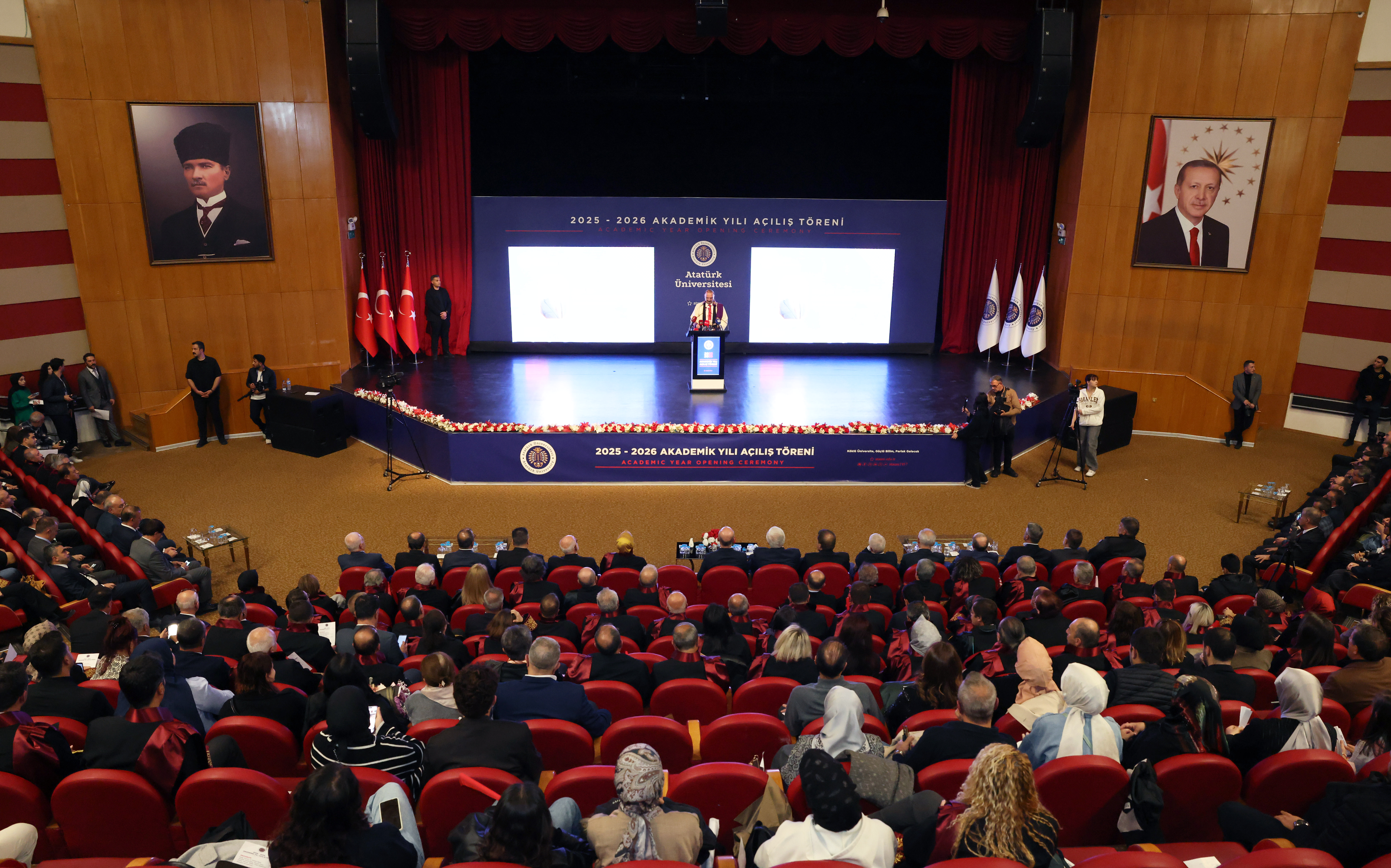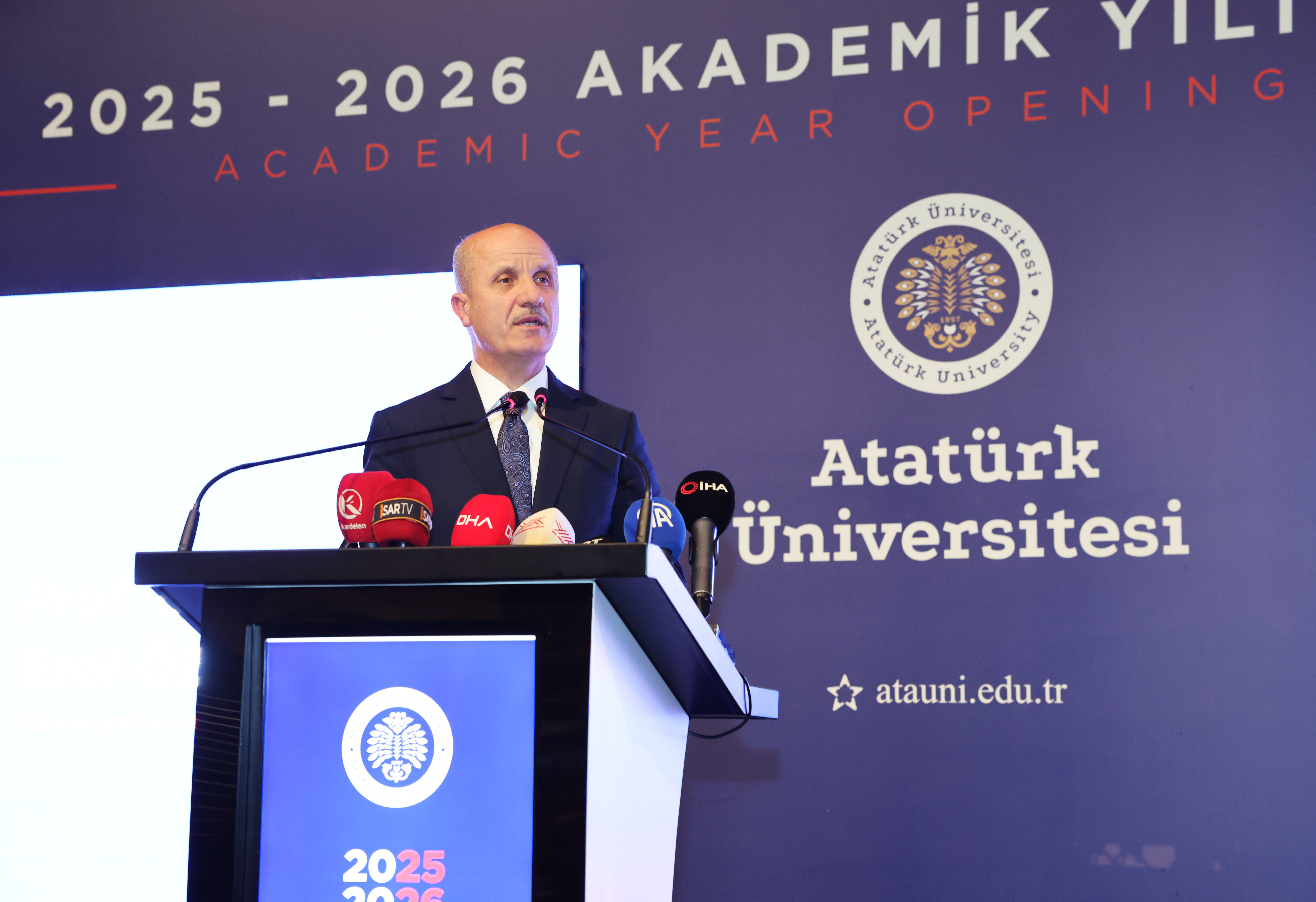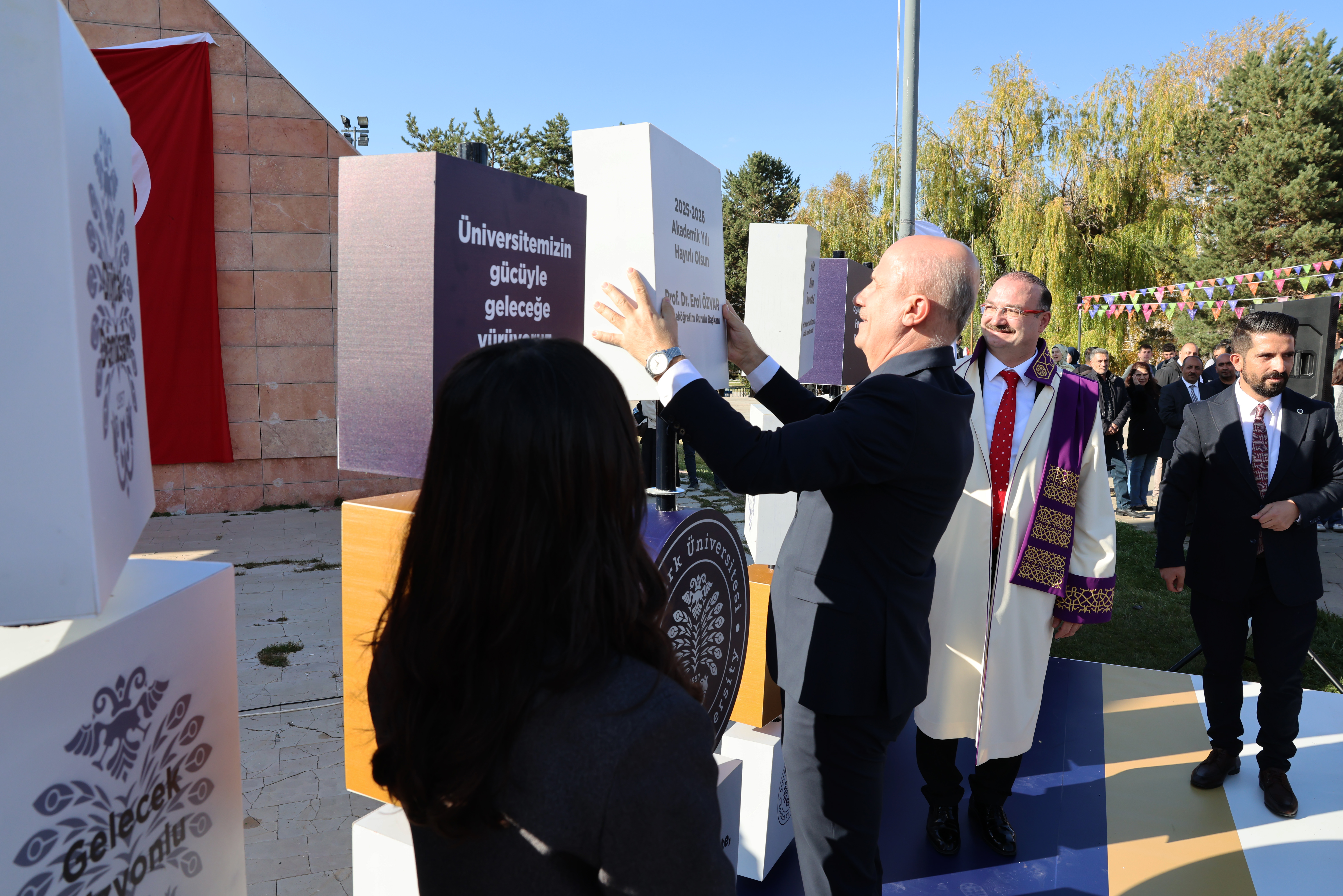 Atatürk Üniversitesi, 2025-2026 Akademik Yılına anlamlı ve yoğun katılımlı bir törenle merhaba dedi. Yükseköğretim Kurulu (YÖK) Başkanı Prof. Dr. Erol Özvar’ın katılımıyla gerçekleşen program, üniversite akademik ve idari personeli, öğrenciler, Erzurum protokolü ve davetlilerin geniş katılımıyla yapıldı.