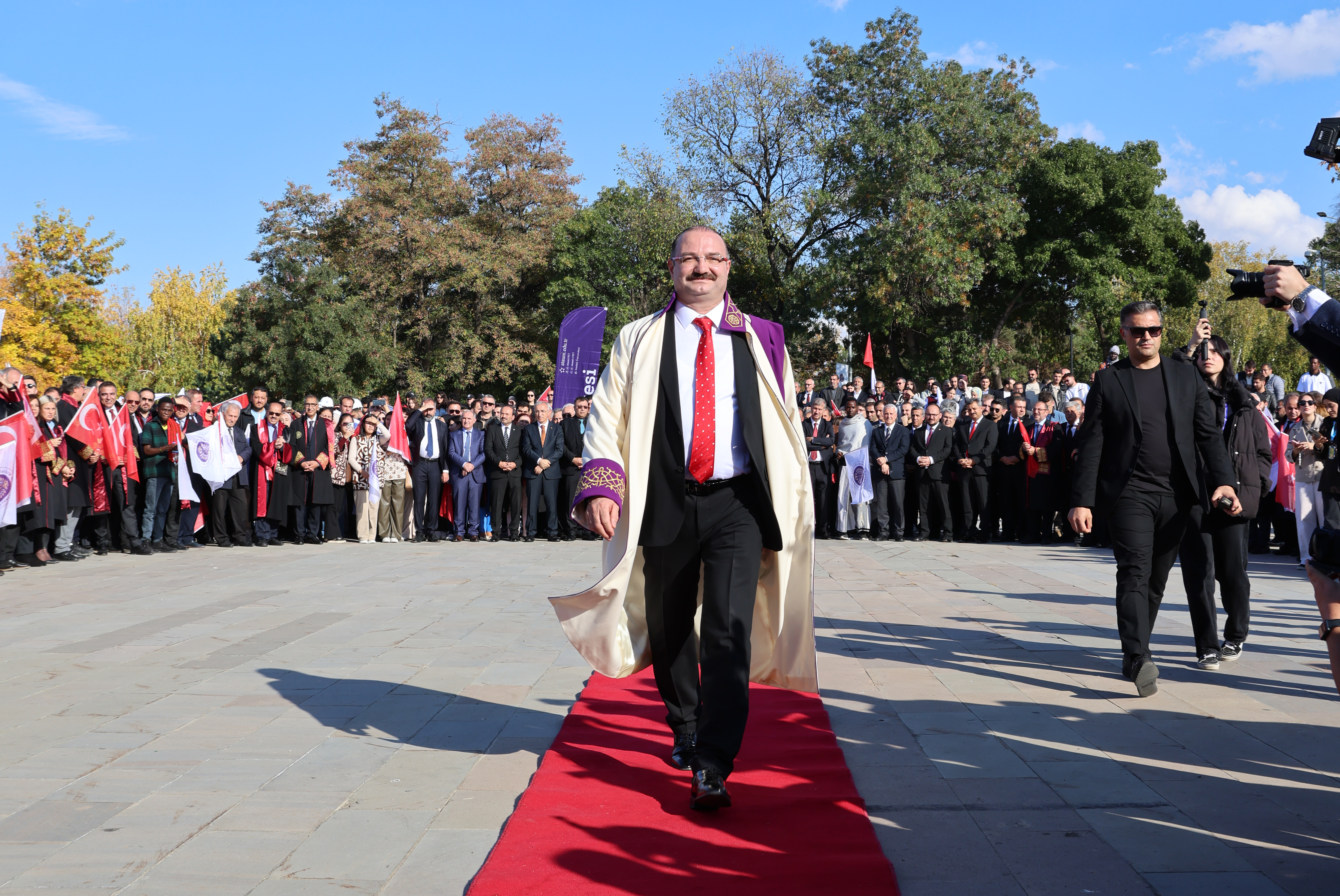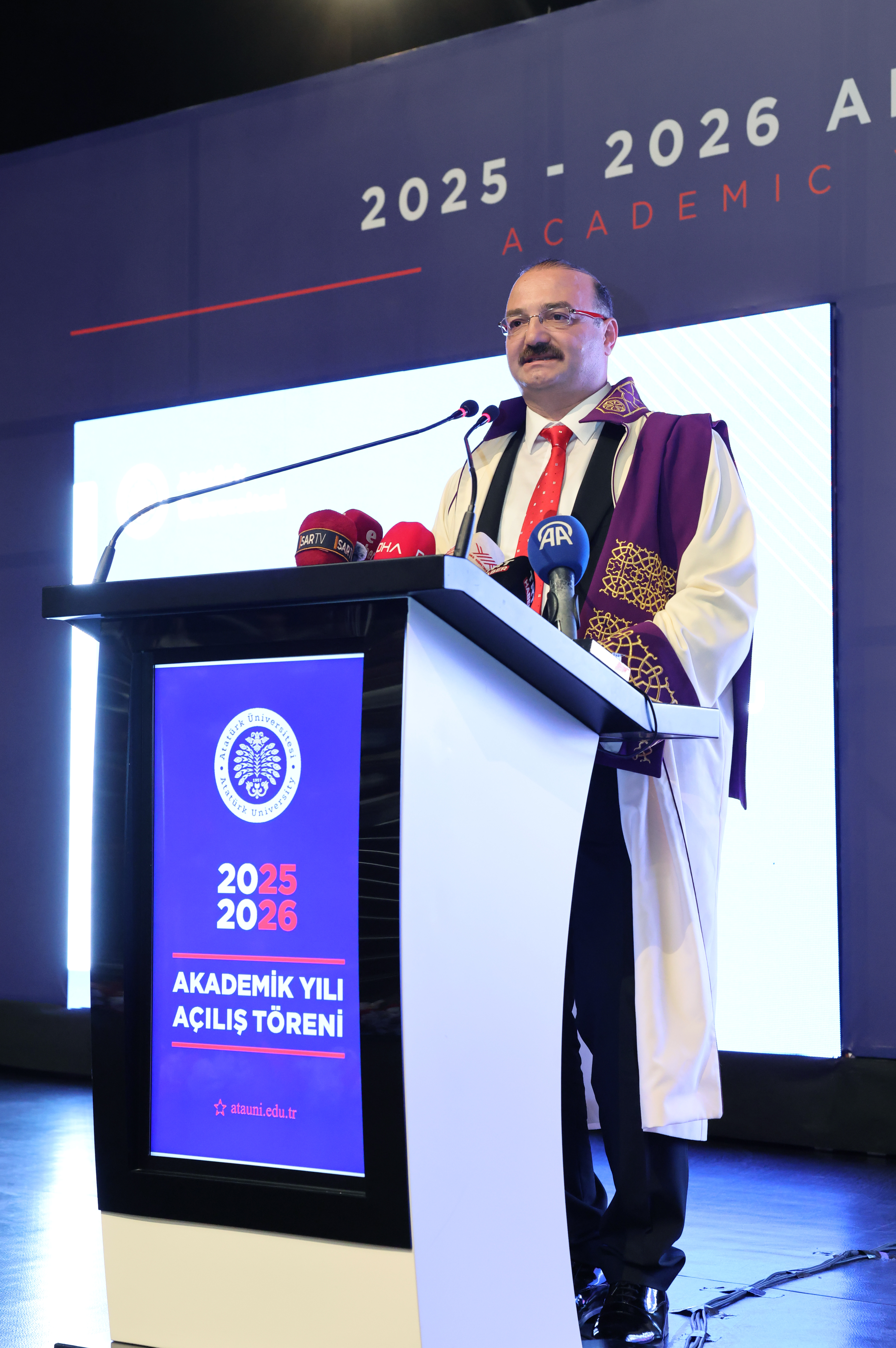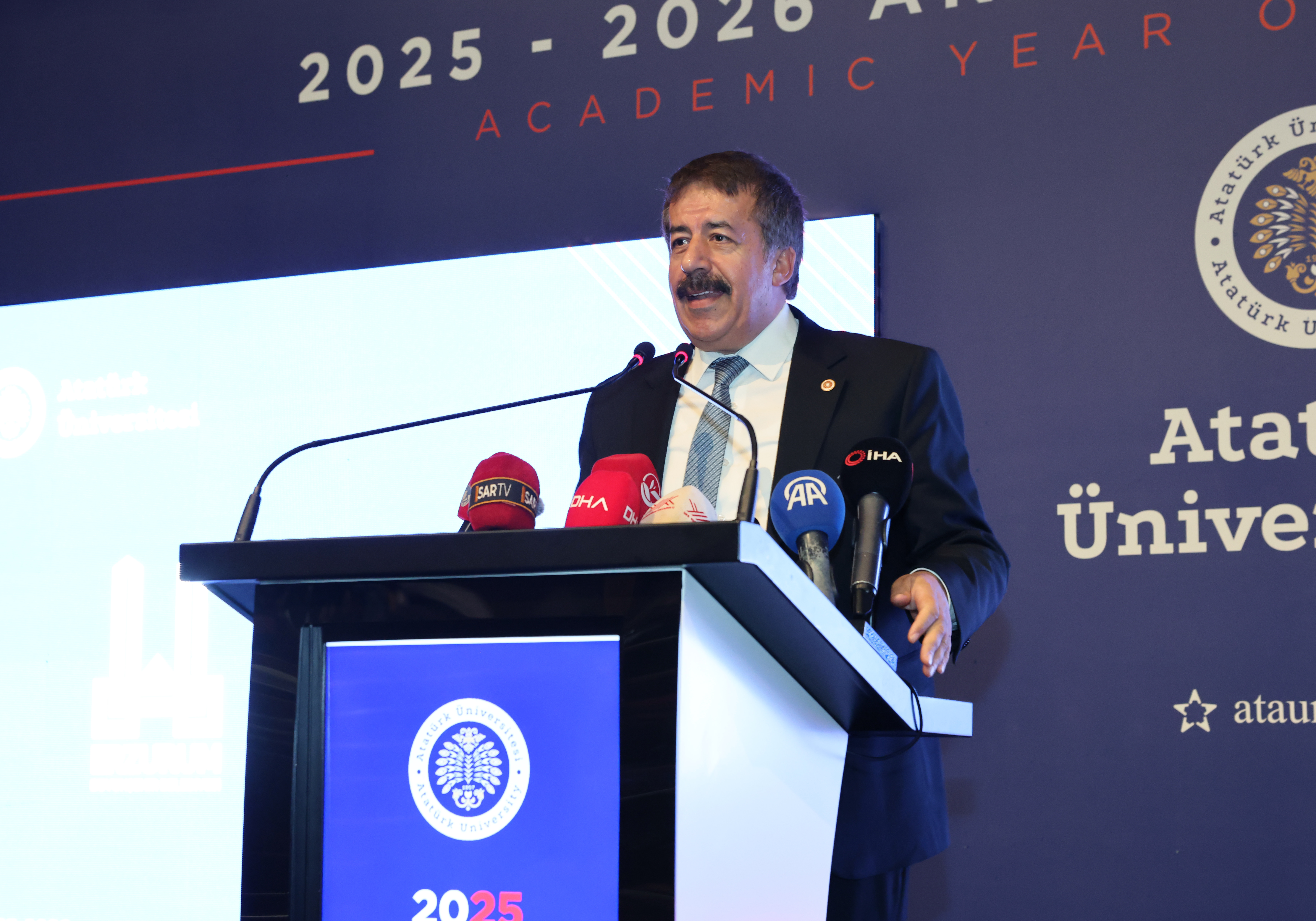 Atatürk Üniversitesi, 2025-2026 Akademik Yılına anlamlı ve yoğun katılımlı bir törenle merhaba dedi. Yükseköğretim Kurulu (YÖK) Başkanı Prof. Dr. Erol Özvar’ın katılımıyla gerçekleşen program, üniversite akademik ve idari personeli, öğrenciler, Erzurum protokolü ve davetlilerin geniş katılımıyla yapıldı.