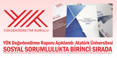 Yükseköğretim Kurulu (YÖK) Başkanı Prof. Dr. M. A. Yekta Saraç, 189 üniversitenin her birine ait “2019 Yılı Üniversite İzleme ve Değerlendirme Raporu”nu açıkladı. Buna göre Atatürk Üniversitesi Topluma Hizmet ve Sosyal Sorumluluk Kategorisinde “Üniversite Sosyal Sorumluluk Projeleri Sayısı” alanında 475 proje ile birinci sırada yer aldı.