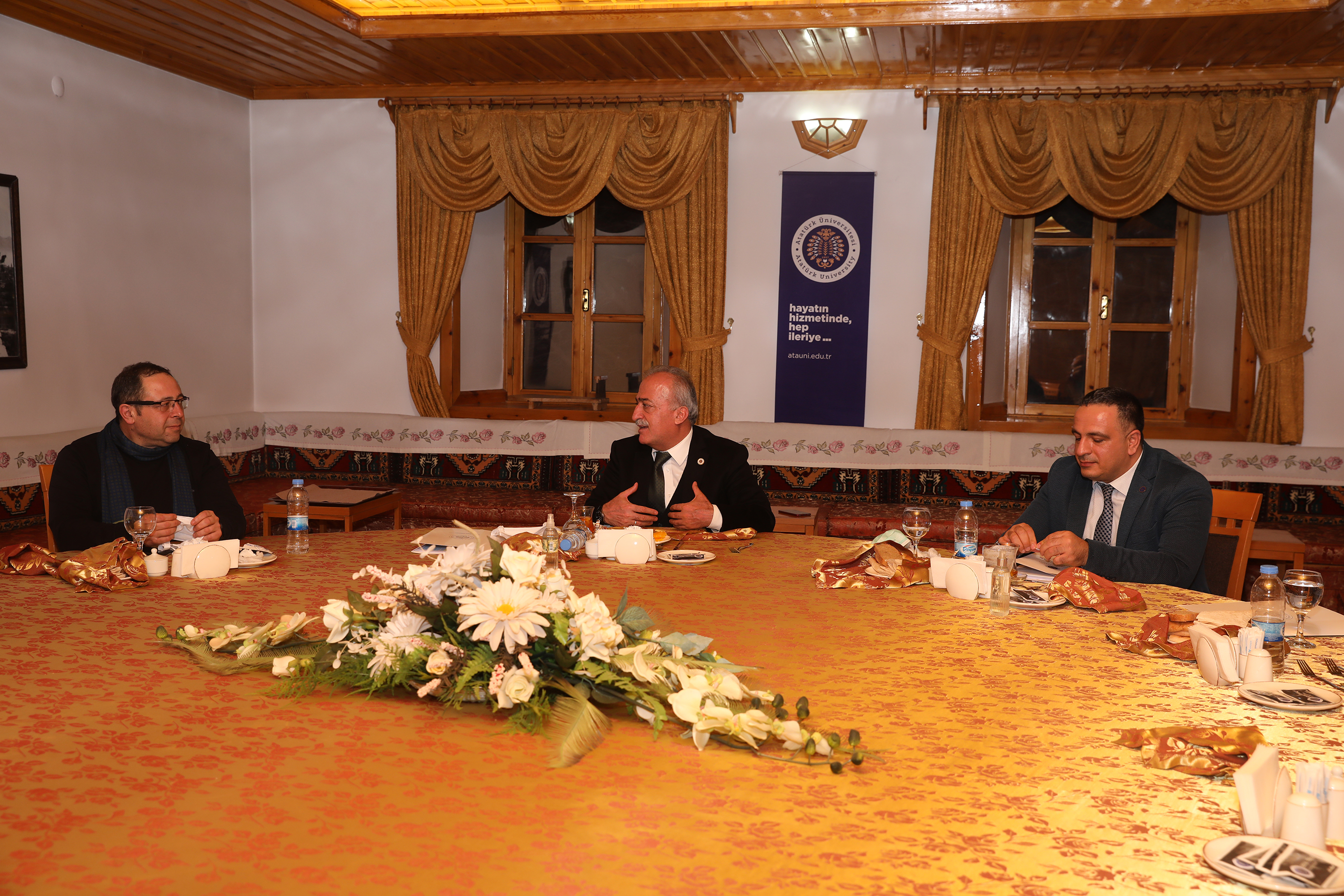 KAP Değerlendirme Takım Başkanı Prof. Dr. Mustafa Güden ve takım üyesi Prof. Dr. Bülent Çavaş’ı üniversite kampüsünde yer alan Erzurum Evi’nde ağırlayan Rektör Çomaklı, üniversitenin kalite politikaları hakkında bilgi verdi.