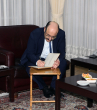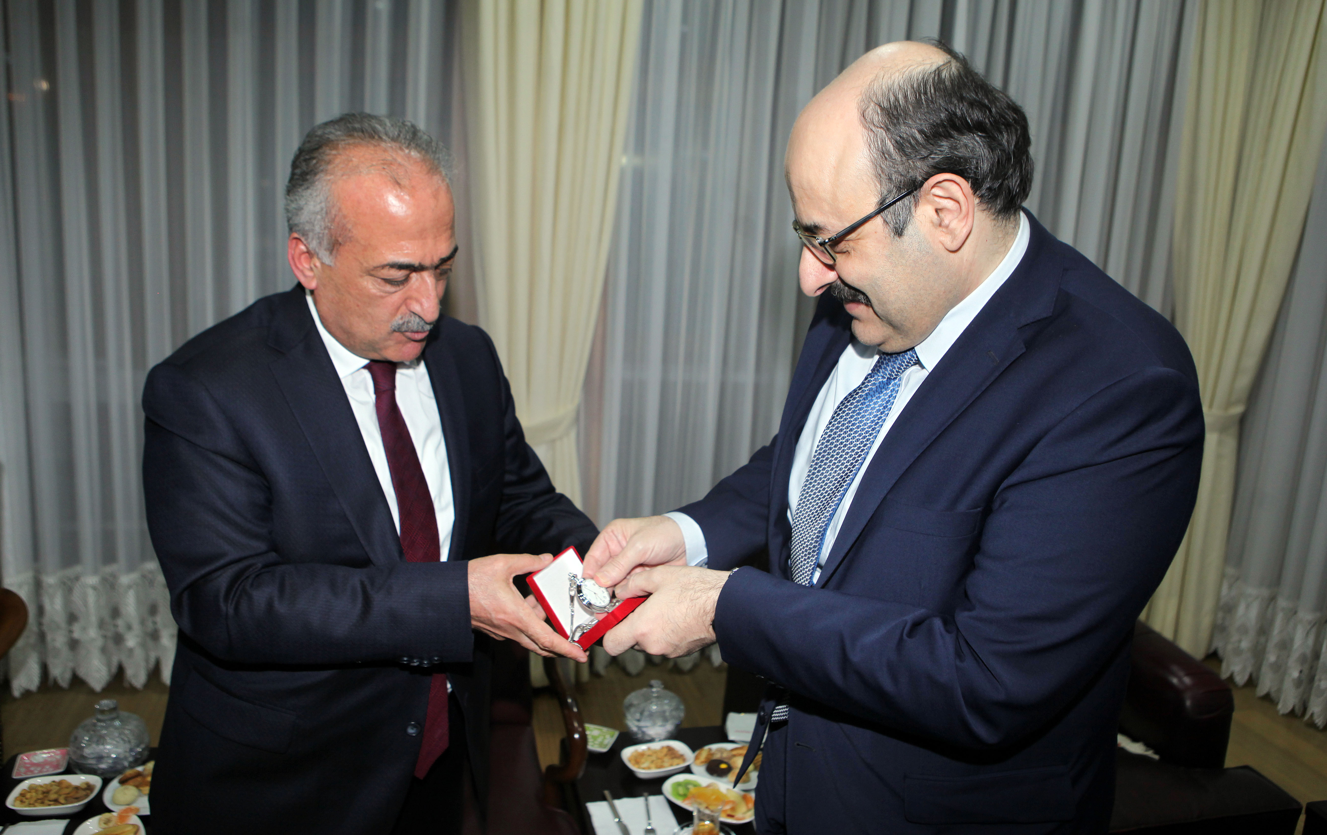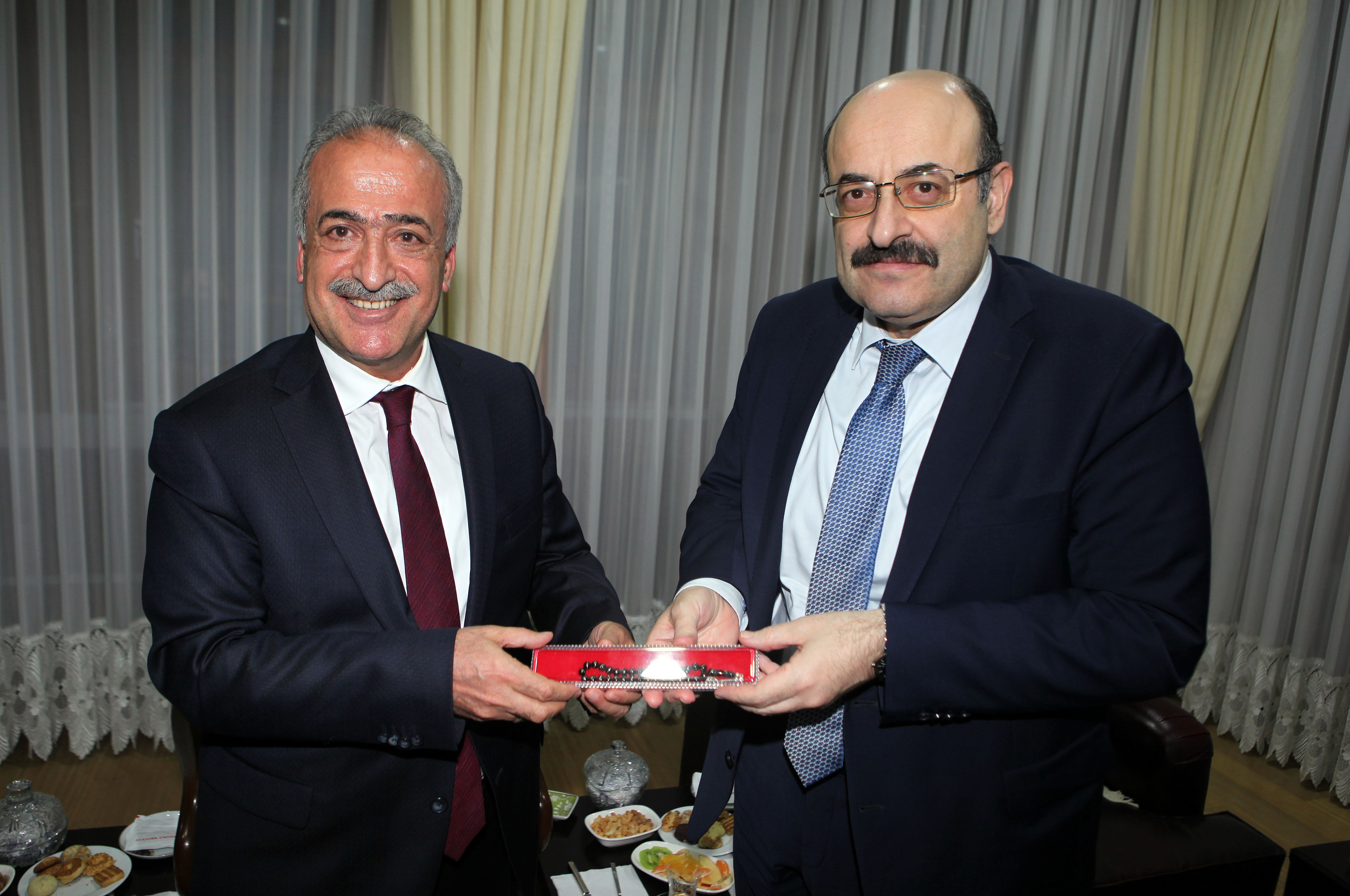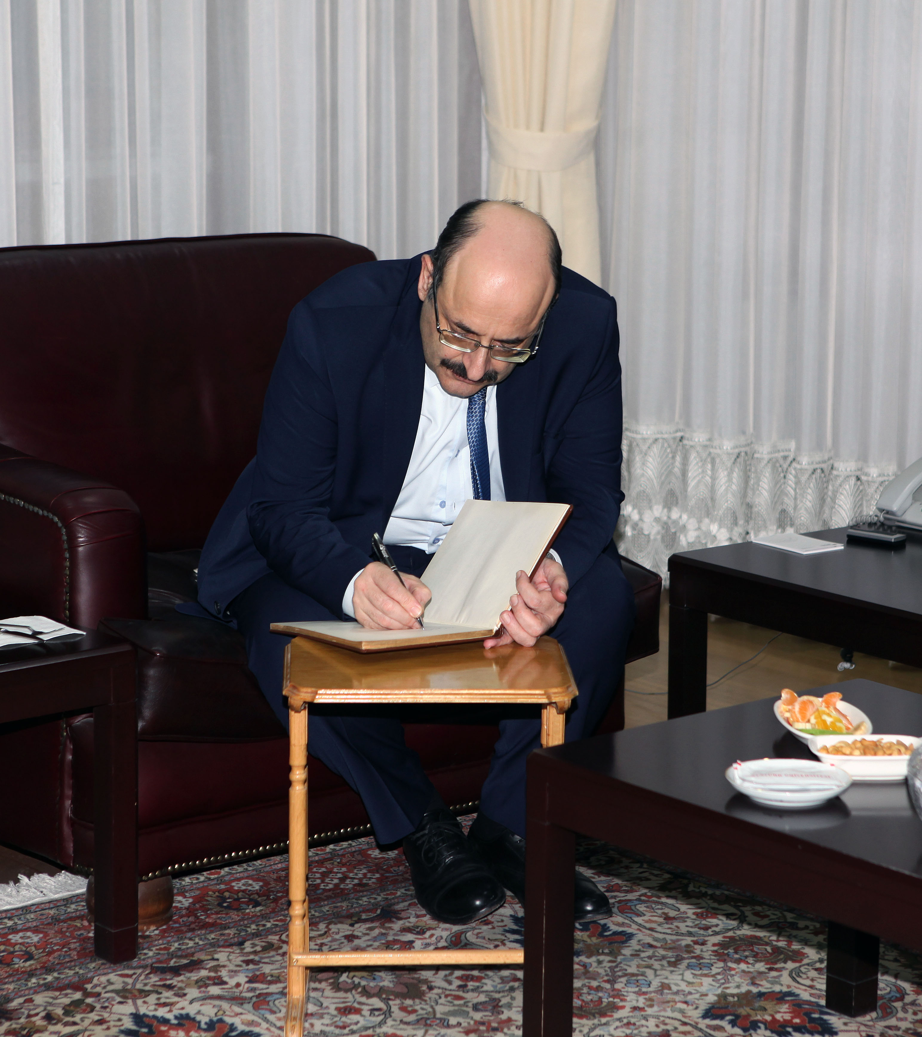 Ziyaretin ardından Prof. Dr. Yekta Saraç, Rektörlük Şeref Defterini imzaladı. Ardından Rektör Çomaklı, YÖK Başkanı Saraç’a Atatürk Üniversitesi plaketi, köstekli saati ve Oltu Taşı Tespihi armağan etti.