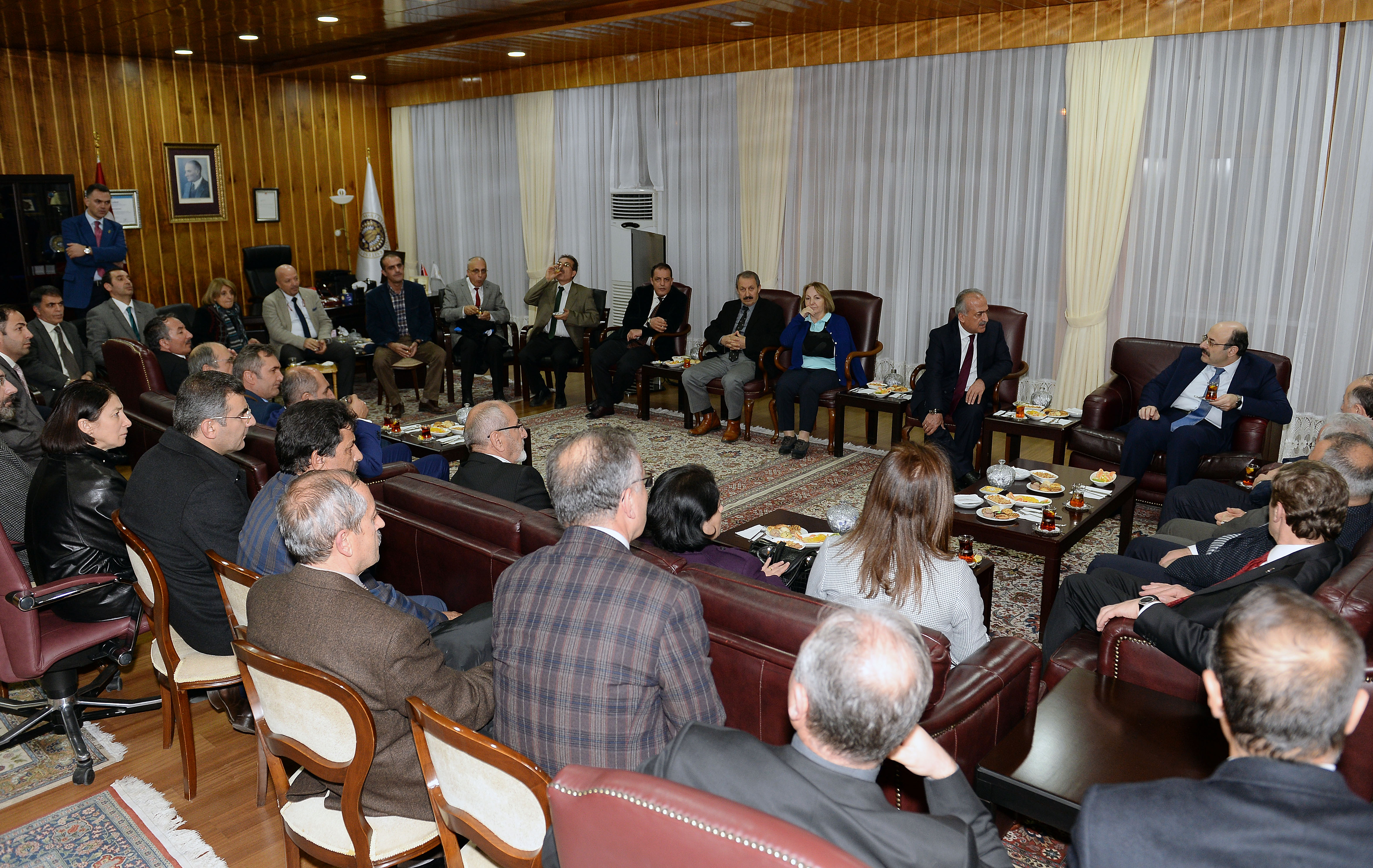 Erzurum’da ilk olarak Atatürk Üniversitesi’ne gelen Prof. Dr. Yekta Saraç, Atatürk Üniversitesi Rektörü Prof. Dr. Ömer Çomaklı’yı makamında ziyaret etti.