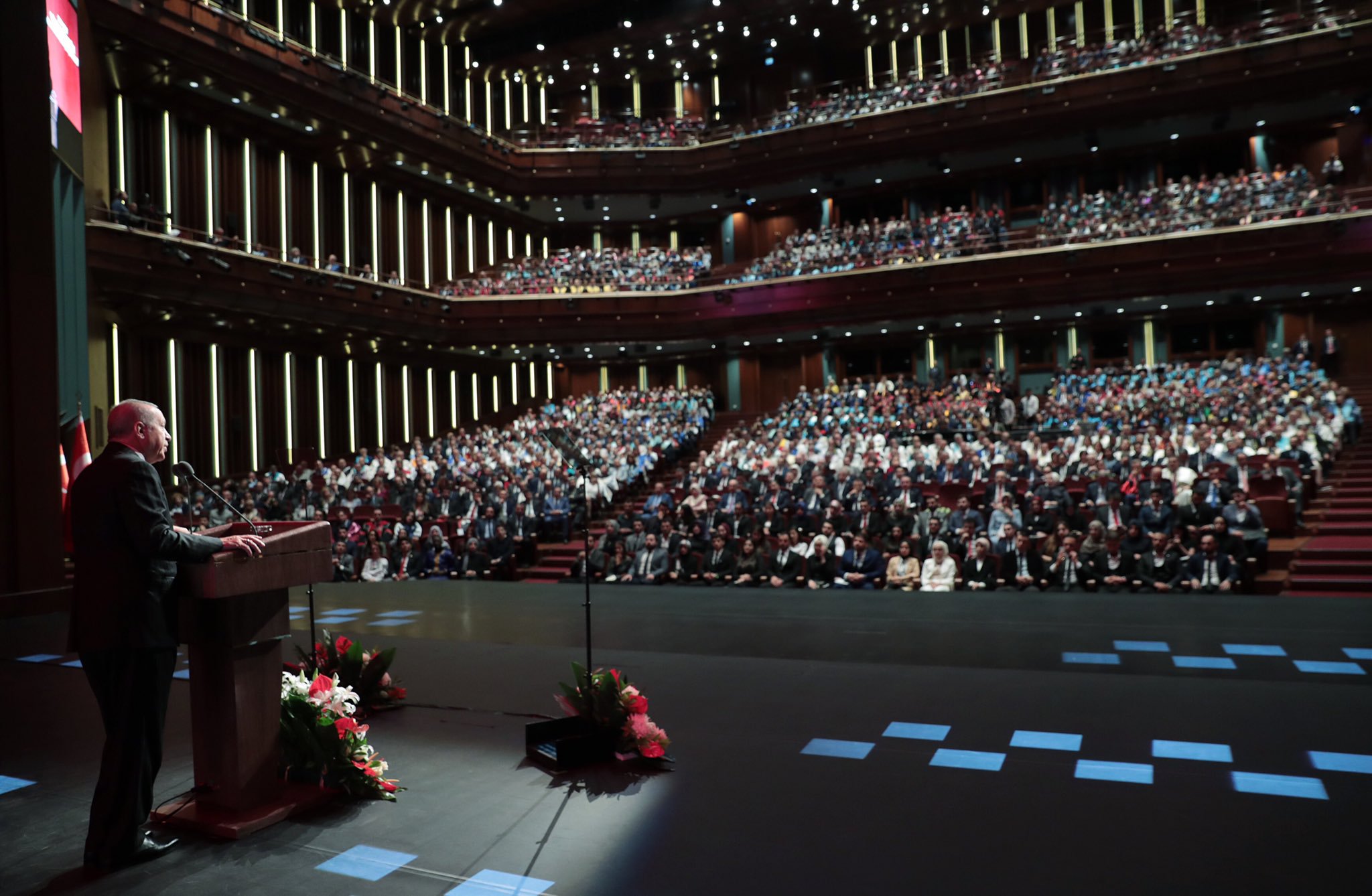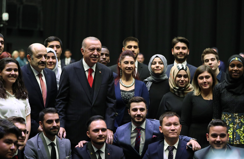 ‘Biz çocuklarımızın, gençlerimizin, milletimizin her bir ferdinin zekâsına, kabiliyetine, çalışkanlığına, üretkenliğine, azmine güveniyoruz” diyen Cumhurbaşkanı Erdoğan, konuşmasına şu şekilde başladı: “Yapmamız gereken, bu büyük potansiyeli eğitim-yoluyla hem bireylerimizin, hem milletimizin, hem devletimizin hayrına neticelere vesile olacak şekilde eğitmek, yönlendirmektir. Eğitim, sağlık, adalet, ulaştırma, enerji gibi temel hizmet alanlarında Cumhuriyet tarihinin en büyük yatırımlarını, en büyük atılımlarını gerçekleştirirken, bekamızı ilgilendiren kritik konularda da çok önemli mesafeler kat ediyoruz.”