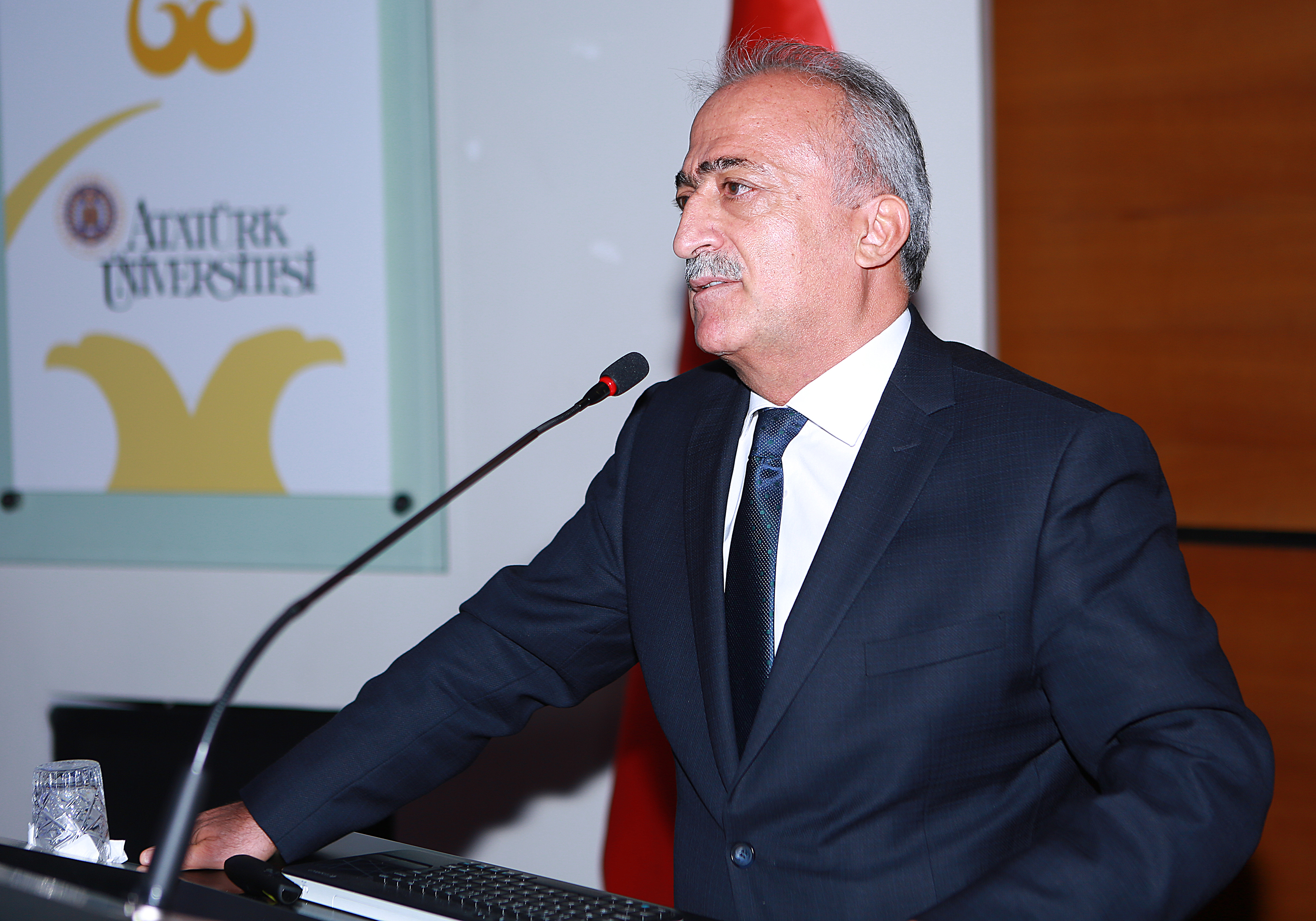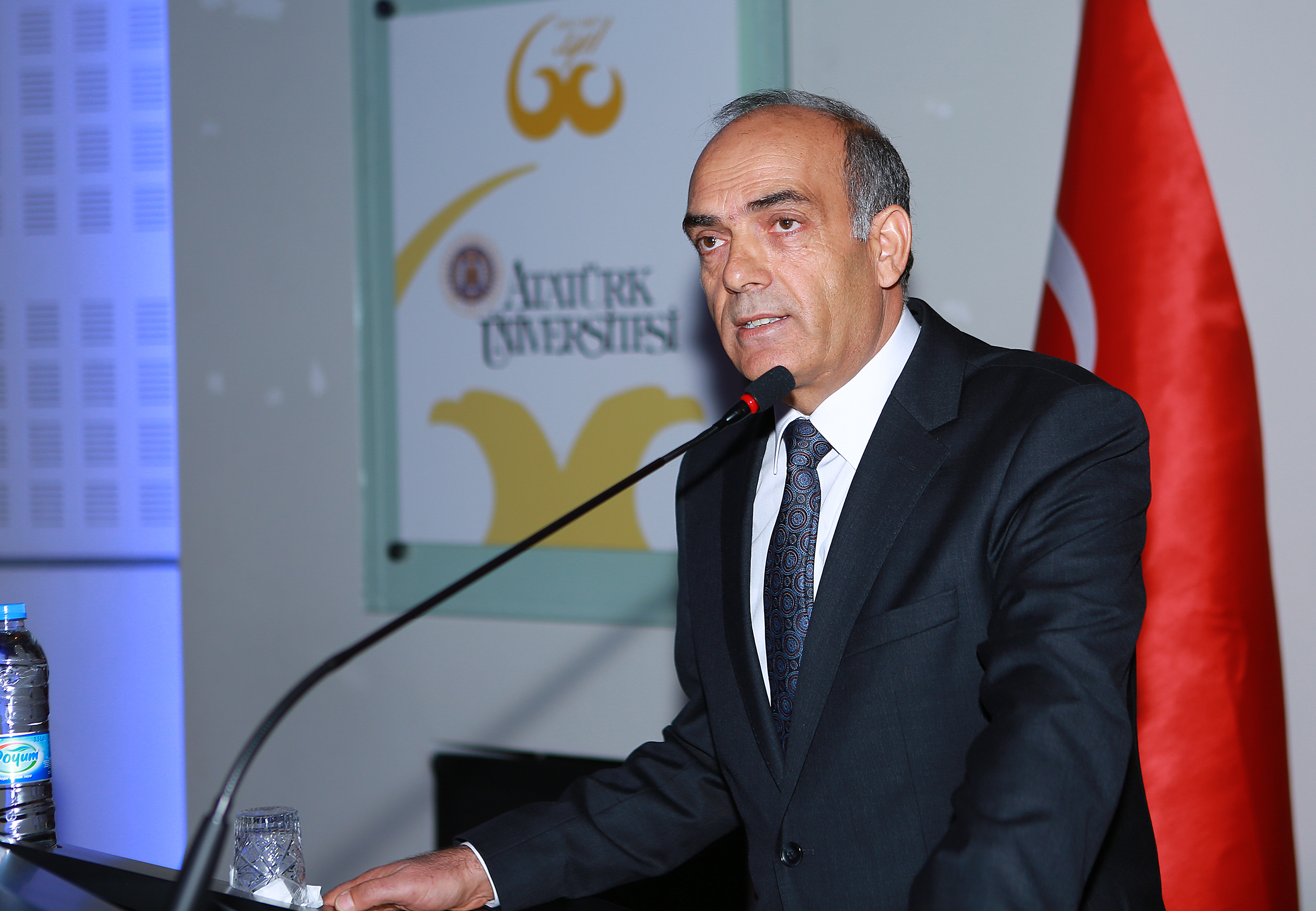 Tarım sektörünün, gerek hammadde üretmesi ve gerekse tarımı ilgilendiren sanayisi ile birlikte ülkemizde hala ekonomiye diğer sektörlere göre daha fazla katkı sağladığına değinerek konuşmasına başlayan Atatürk Üniversitesi Rektörü Prof. Dr. Ömer Çomaklı; “Tarımsal sanayi daha çok yerli hammadde kullanırken katma değeri daha yüksek ürünler üretmektedir. Ekonominin diğer sektörlerinin hammaddeyi büyük miktarlarda ithal ederek değerlendirmesi dış ticaret açığımızın başlıca sebebidir. Çünkü tarımsal dış ticaret açığı yıllar itibariyle ya hiç olmamakta ya da çok az miktarlarda olmaktadır. Ülkemizin içinde bulunduğu işsizlik göz önüne alındığında tarımın genel istihdama yaptığı sosyal ve ekonomik katkı göz önüne alınmalıdır” ifadelerini kullandı.