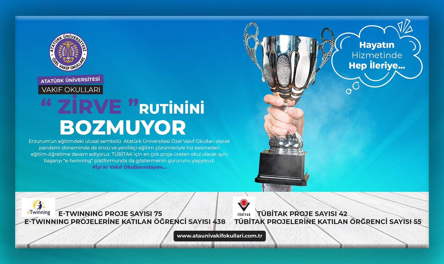 Öğrencilerin evde geçen sürelerini en verimli şekilde değerlendirmeleri için TÜBİTAK'ın yanında uluslararası saygınlığı olan kurumlarla çalışmalarını sürdüren Özel Vakıf Okulları, TÜBİTAK'taki başarılarına bu sene de uluslararası eşgüdümlü proje platformu olan "e-twinning"i ekledi. Bütün sınıf aralıklarında Erzurum'u başarıyla temsil eden Özel Vakıf Okulları, Atatürk Üniversitesinin uluslararası prestijini anaokulu, ilkokul ve ortaokul kademelerinde de yansıtıyor.